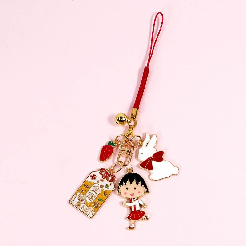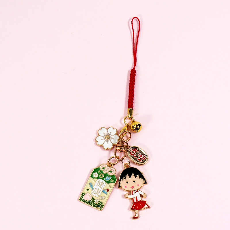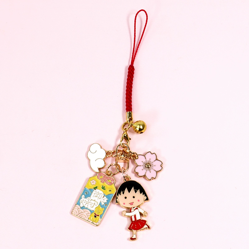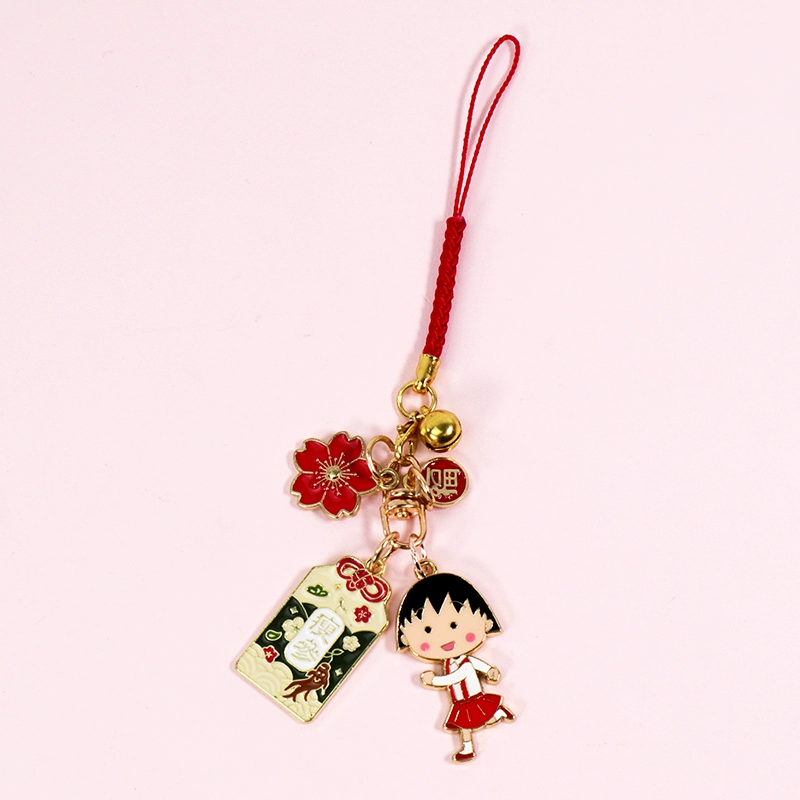 Chibi Maruko-chan mobile phone chain pendant cartoon cute female pendant anime creative alloy decorative chain red rope bell