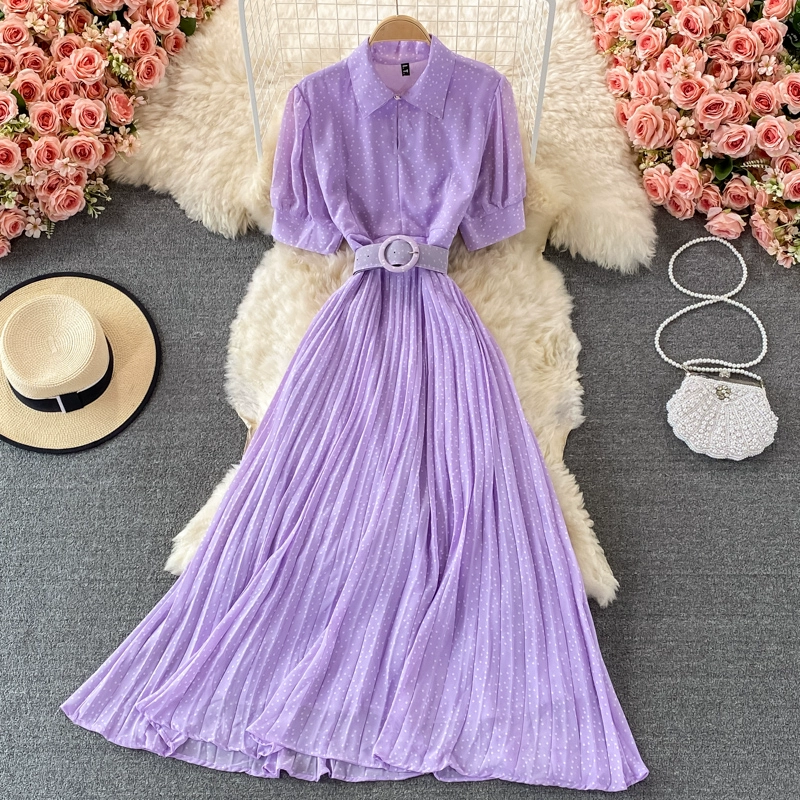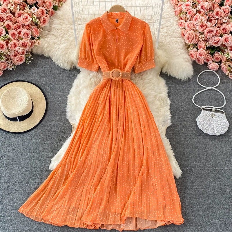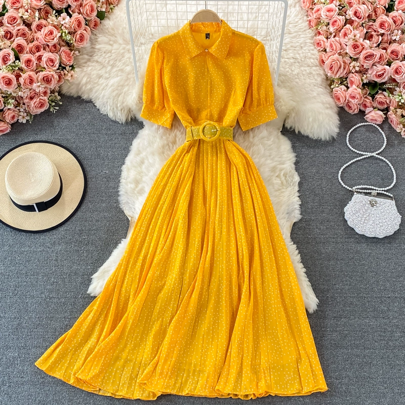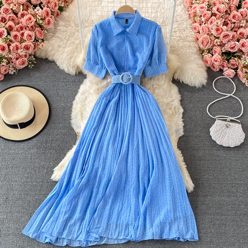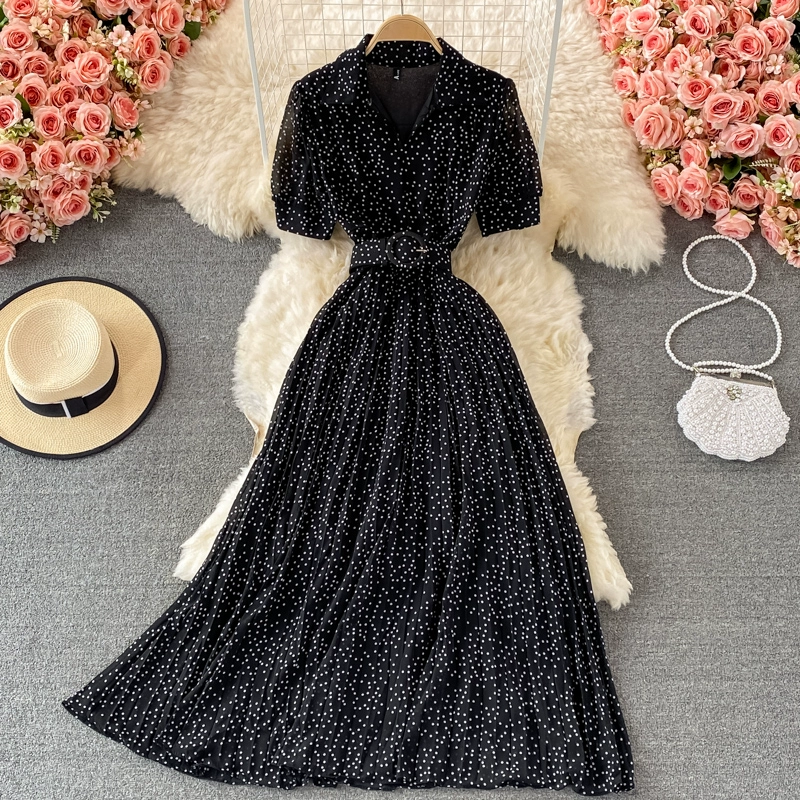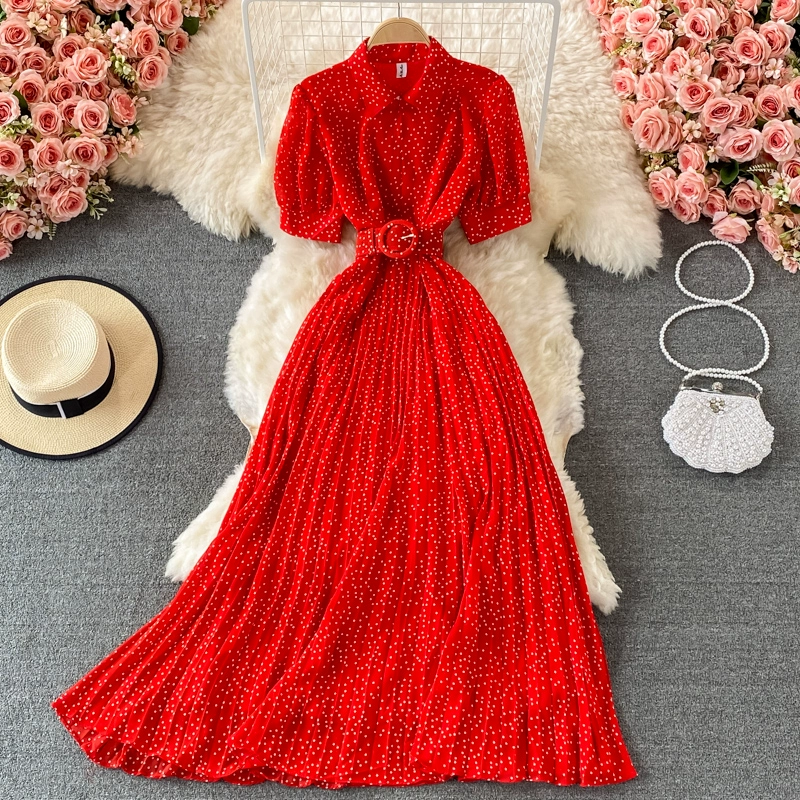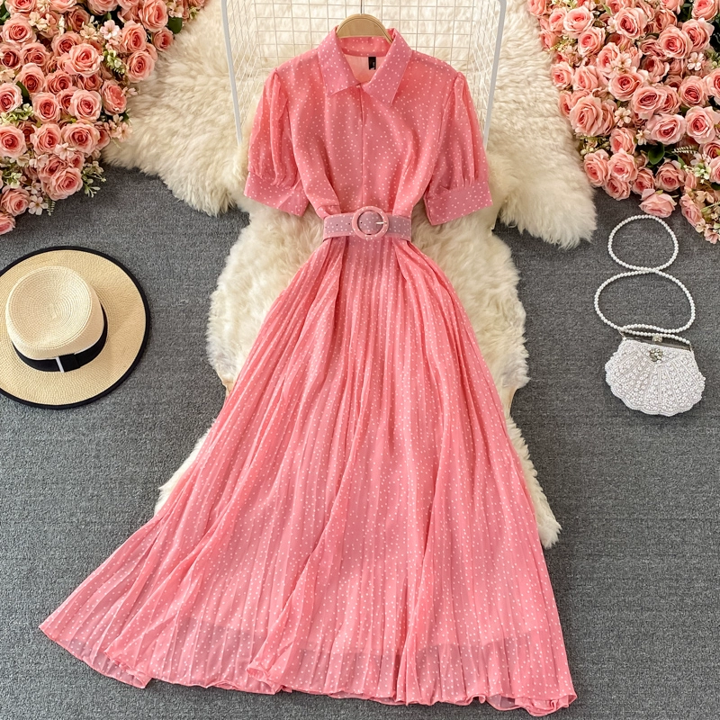 | nameOriginal | chic 2024 summer pleated polka dot wide skirt dress |