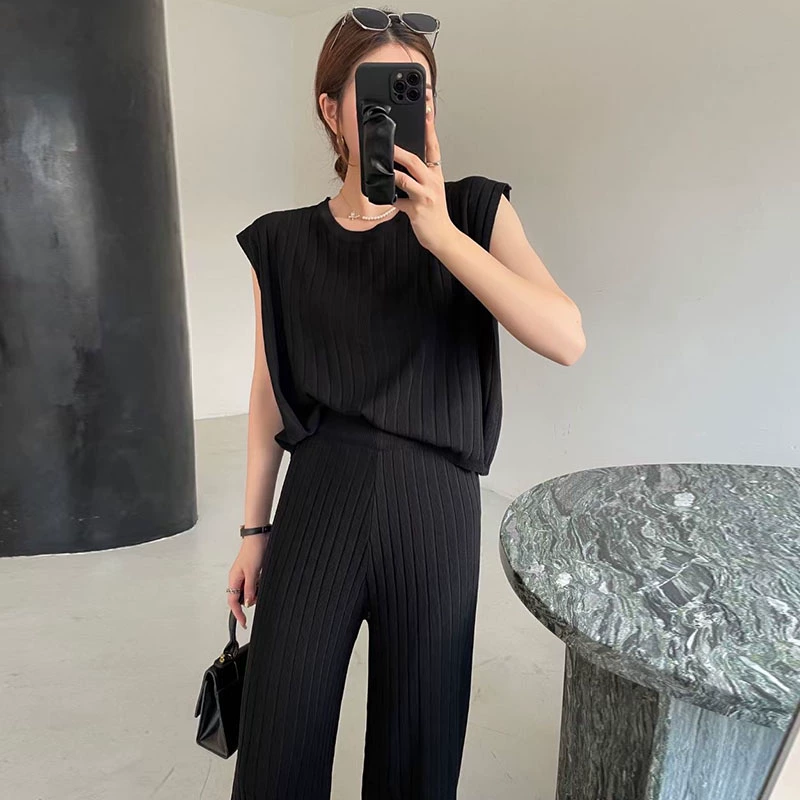 | nameOriginal | Chic all-match round neck pit strip trousers suit sweater |