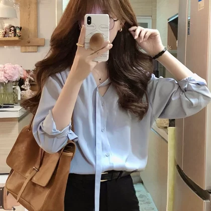 | nameOriginal | Chic and beautiful long-sleeved ribbon shirt for spring |
