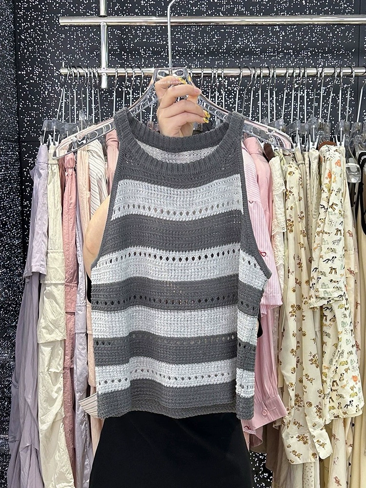 Chic and beautiful sleeveless vest with apricot stripes