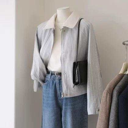 | nameOriginal | Chic and chic striped lapel casual loose top |