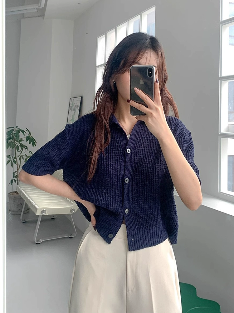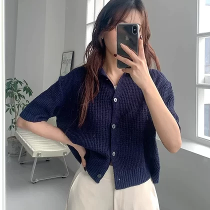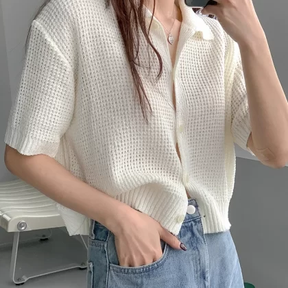 | nameOriginal | Chic and versatile polo collar ice silk knitted cardigan |