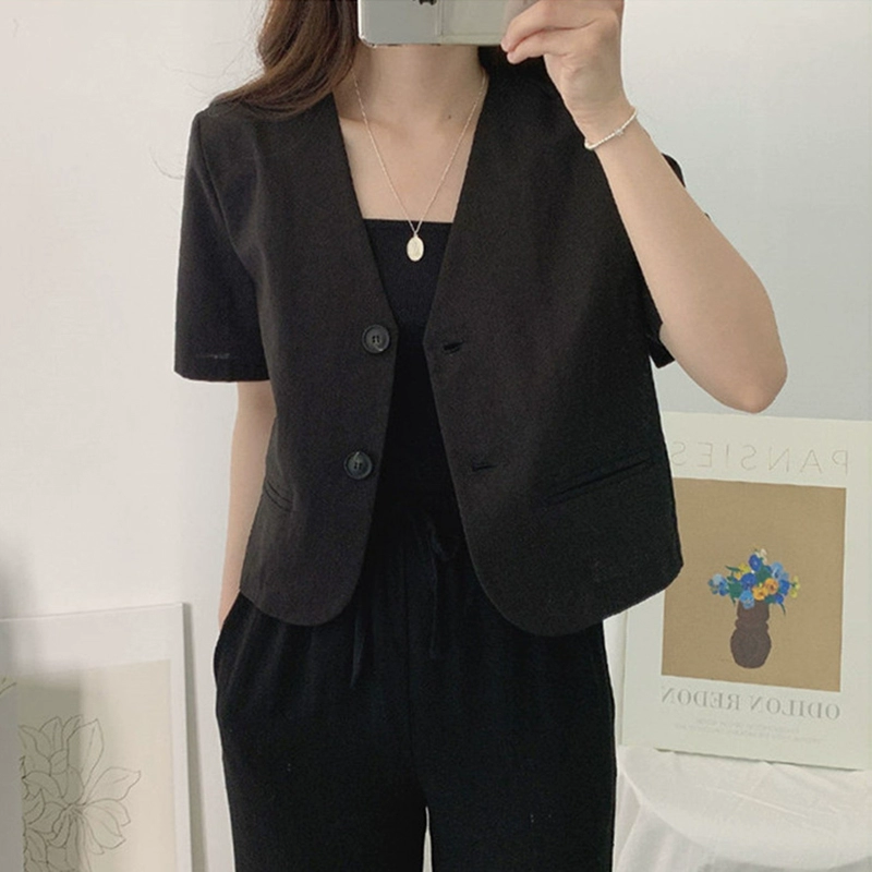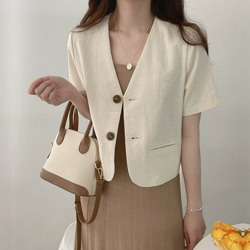 chic cotton and linen jacket cardigan top casual short sleeves