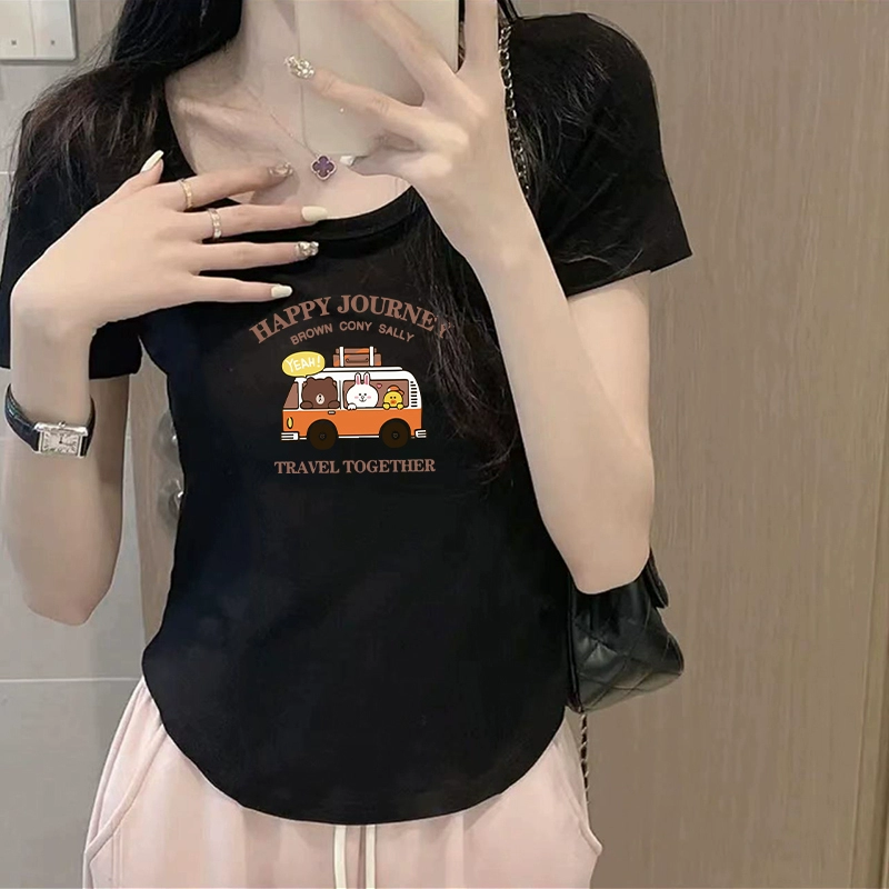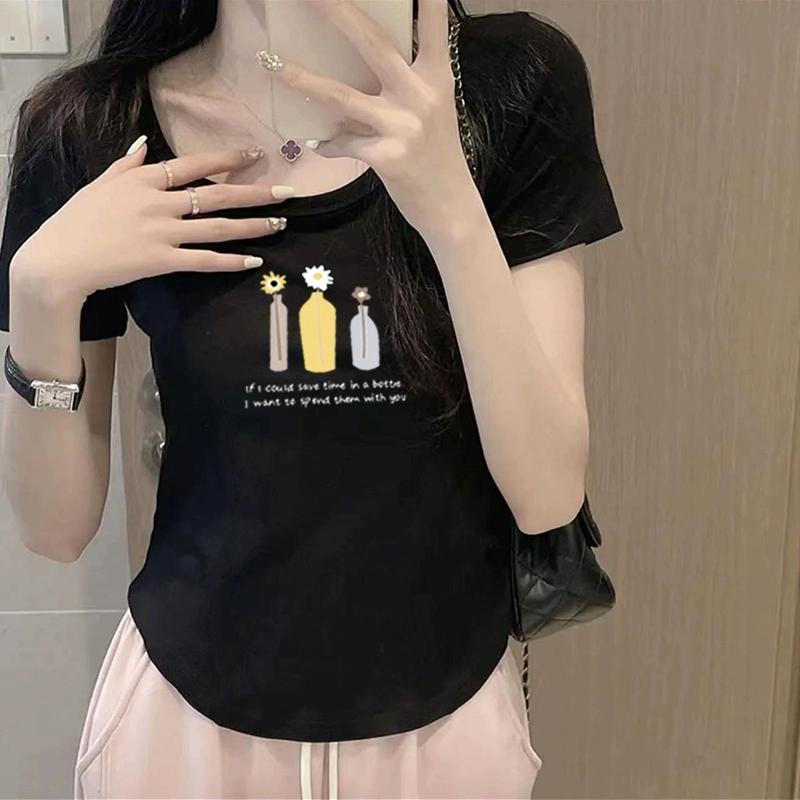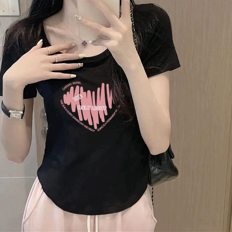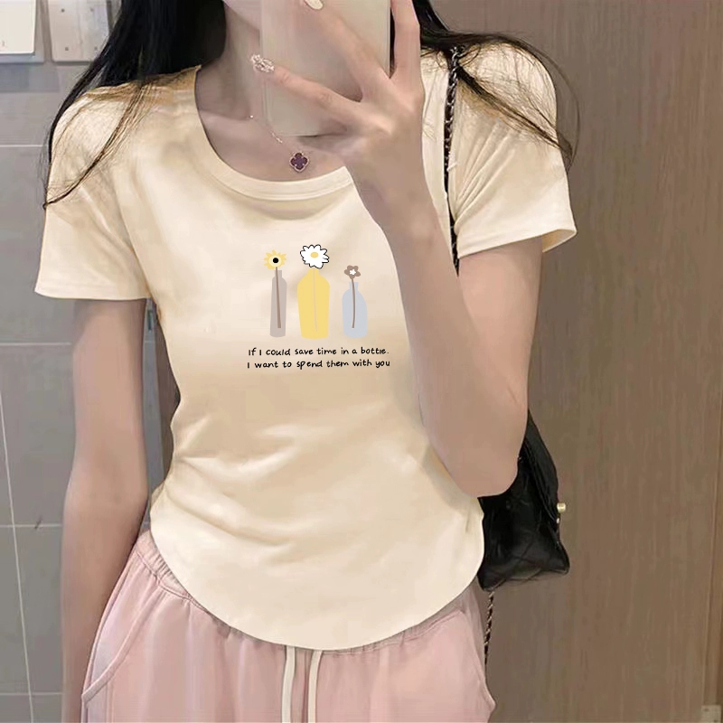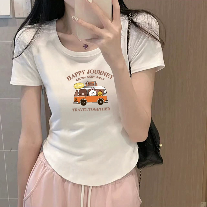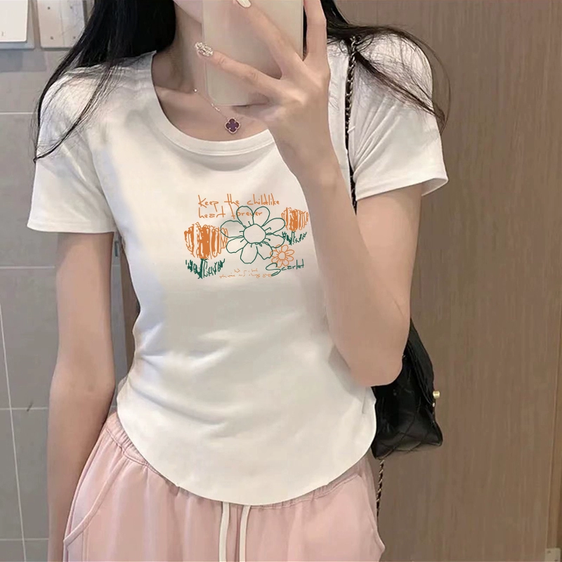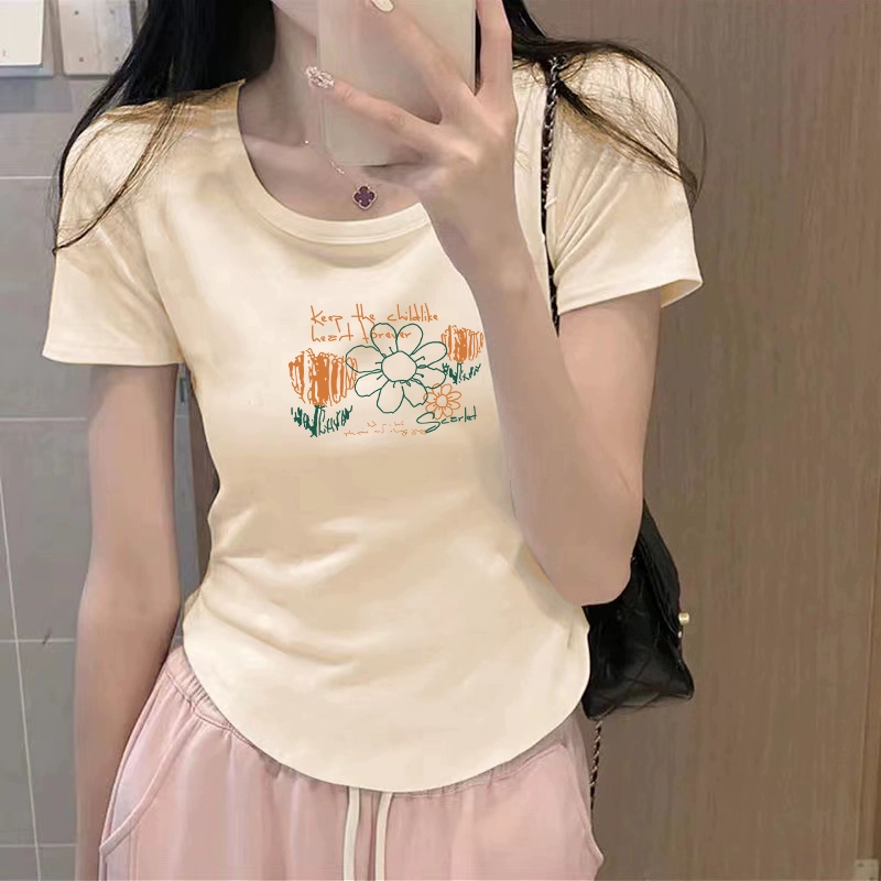 | nameOriginal | Chic curved slim-fitting half-sleeved cropped top t-shirt |
