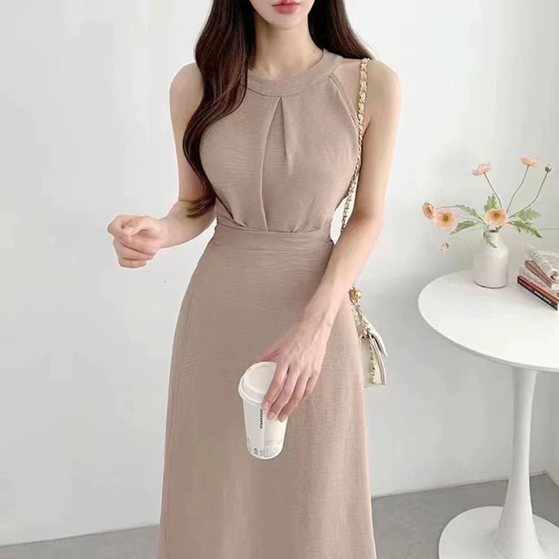 | nameOriginal | Chic French style sleeveless irregular slit halter neck |