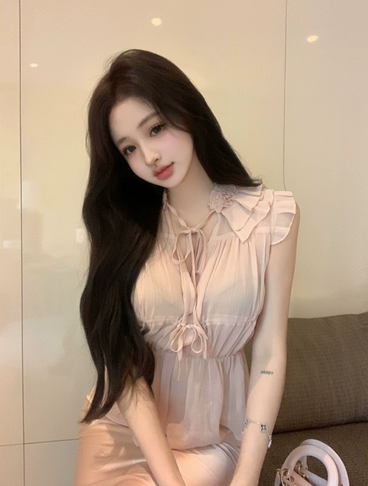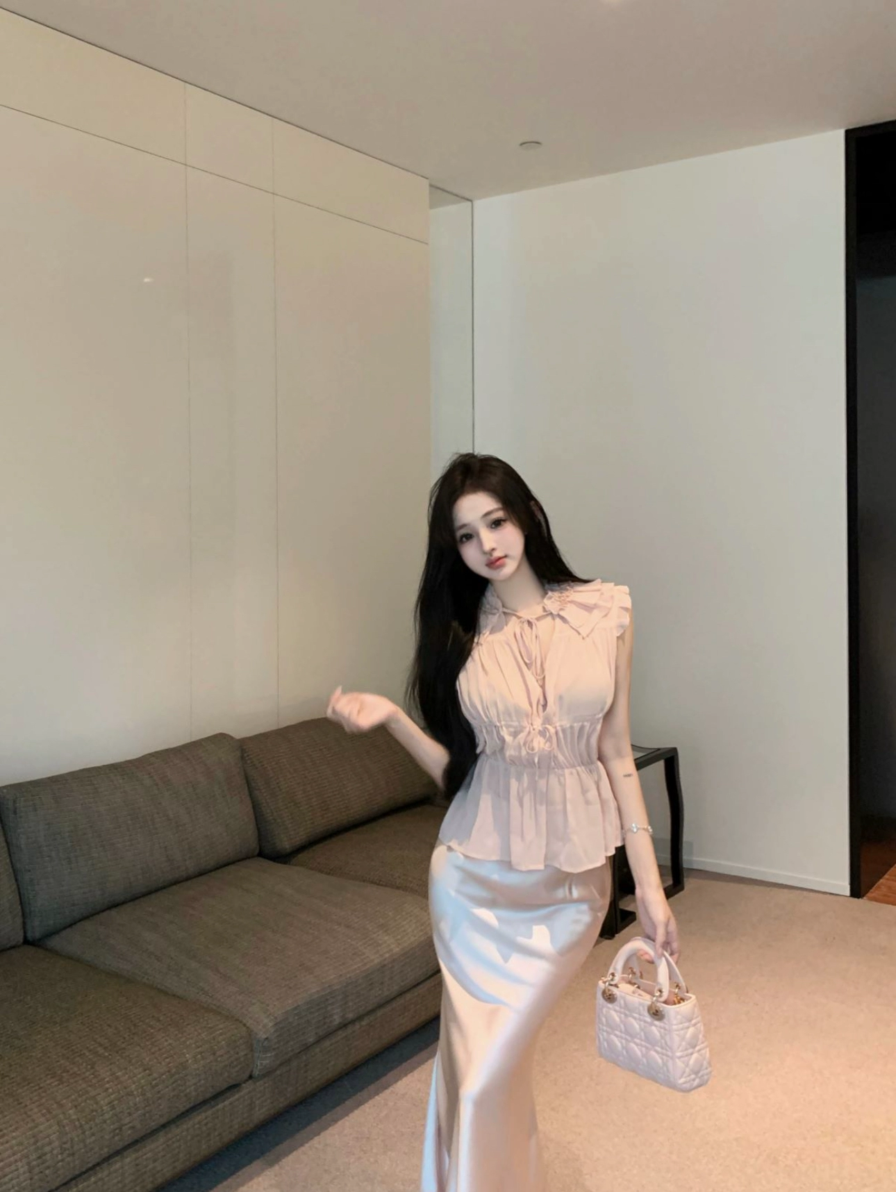 | nameOriginal | chic gentle sleeveless slim fit pleated chiffon shirt |