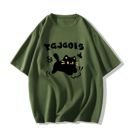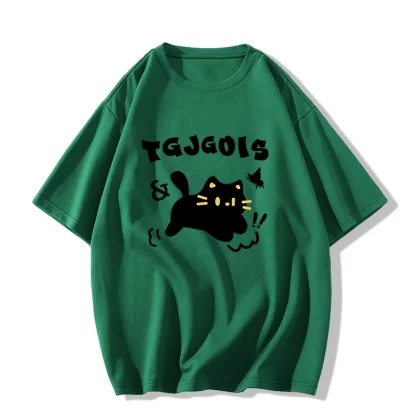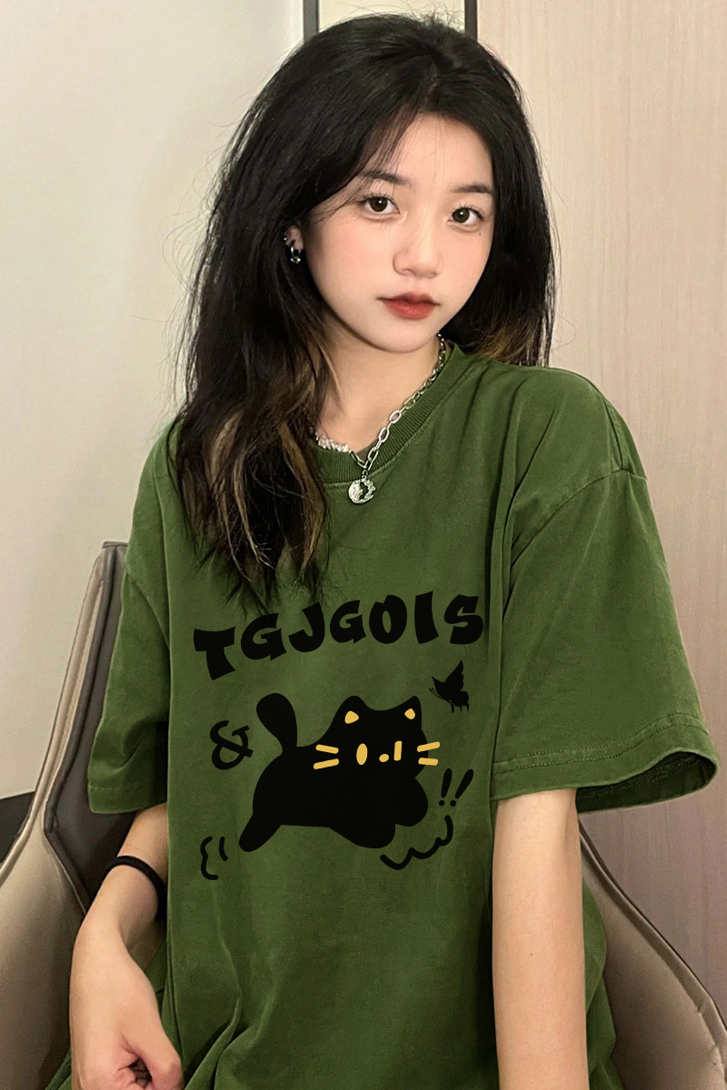 | nameOriginal | chic green cat short sleeve loose top cartoon |