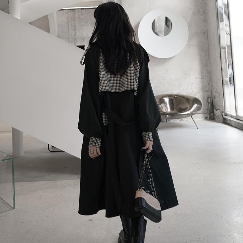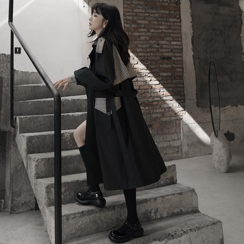 chic Hepburn trench coat women's design sense 2024 new small plaid stitching coat