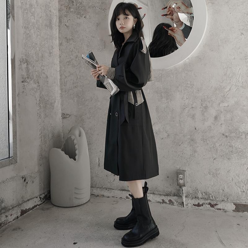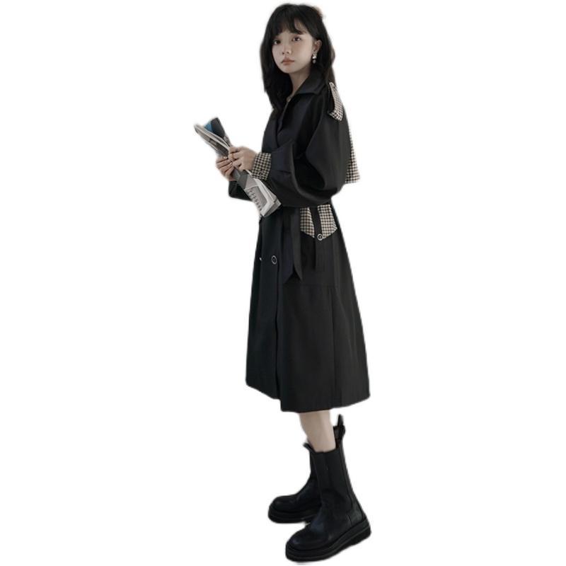 chic Hepburn trench coat women’s design sense 2024 new small plaid stitching coat