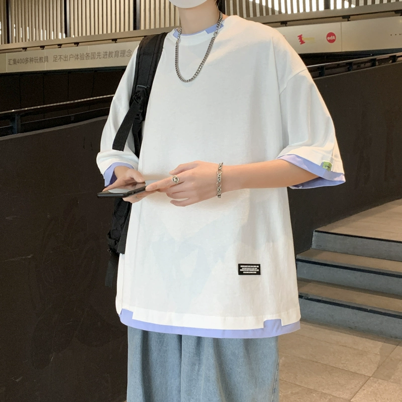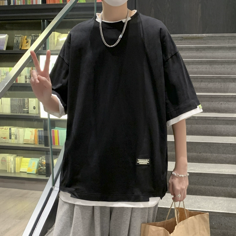 | nameOriginal | Chic Hong Kong style boys fake two-piece versatile short-sleeved T-shirt |