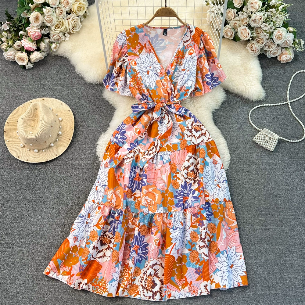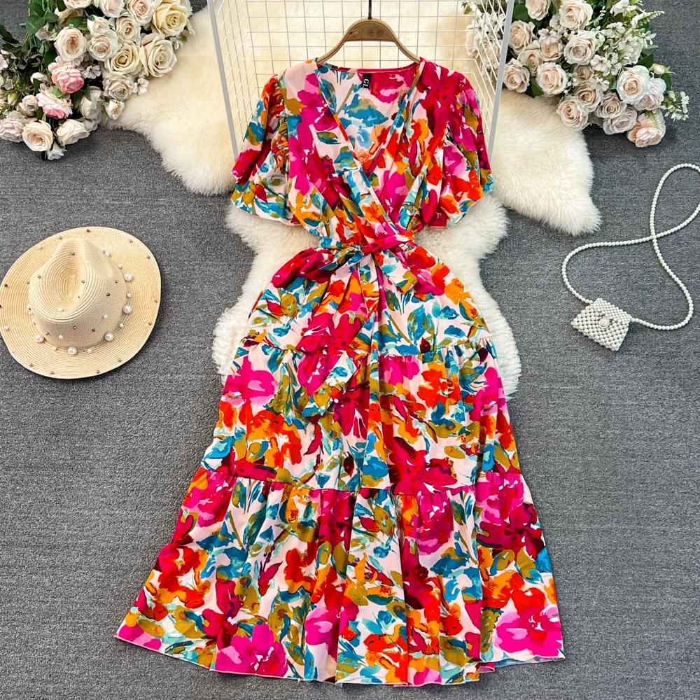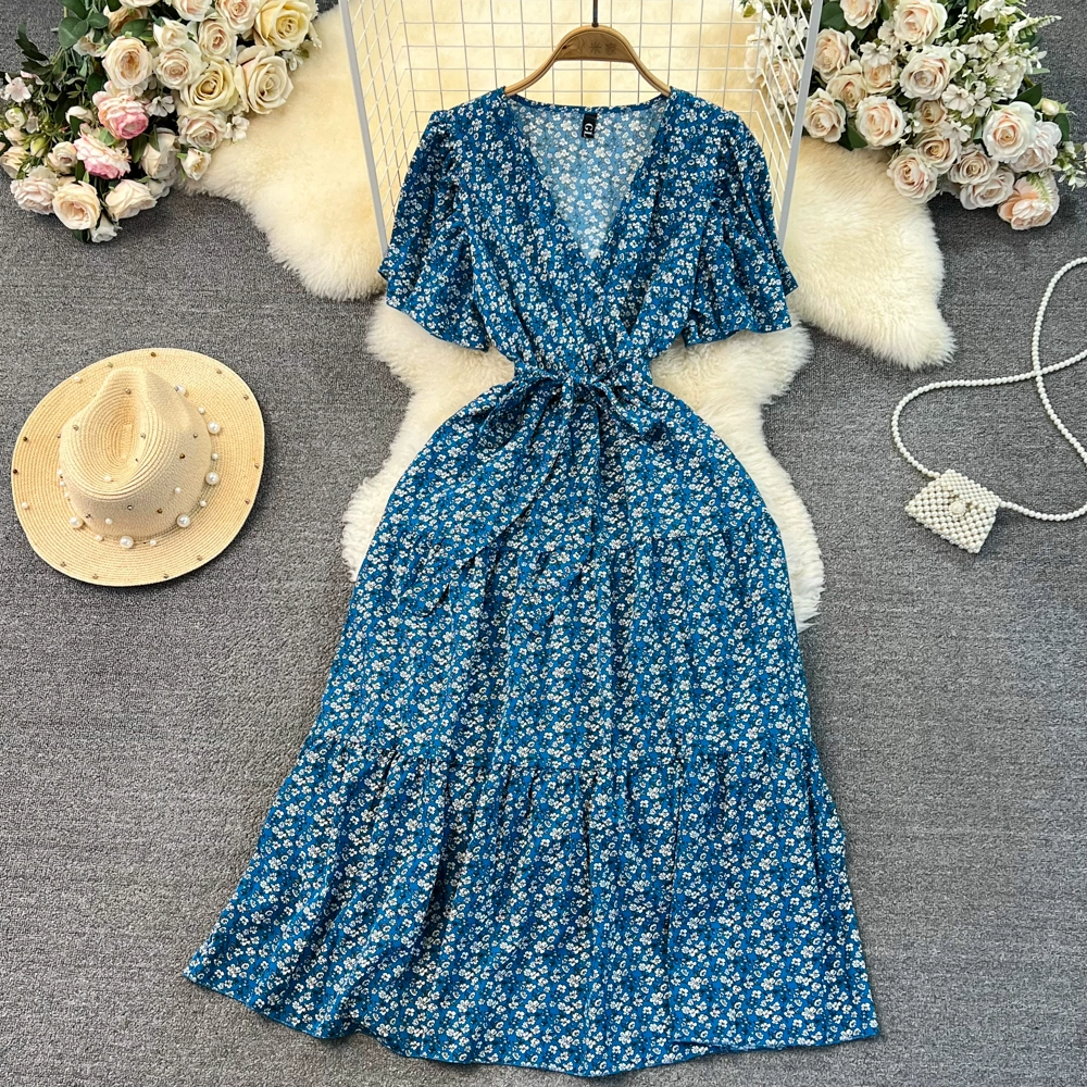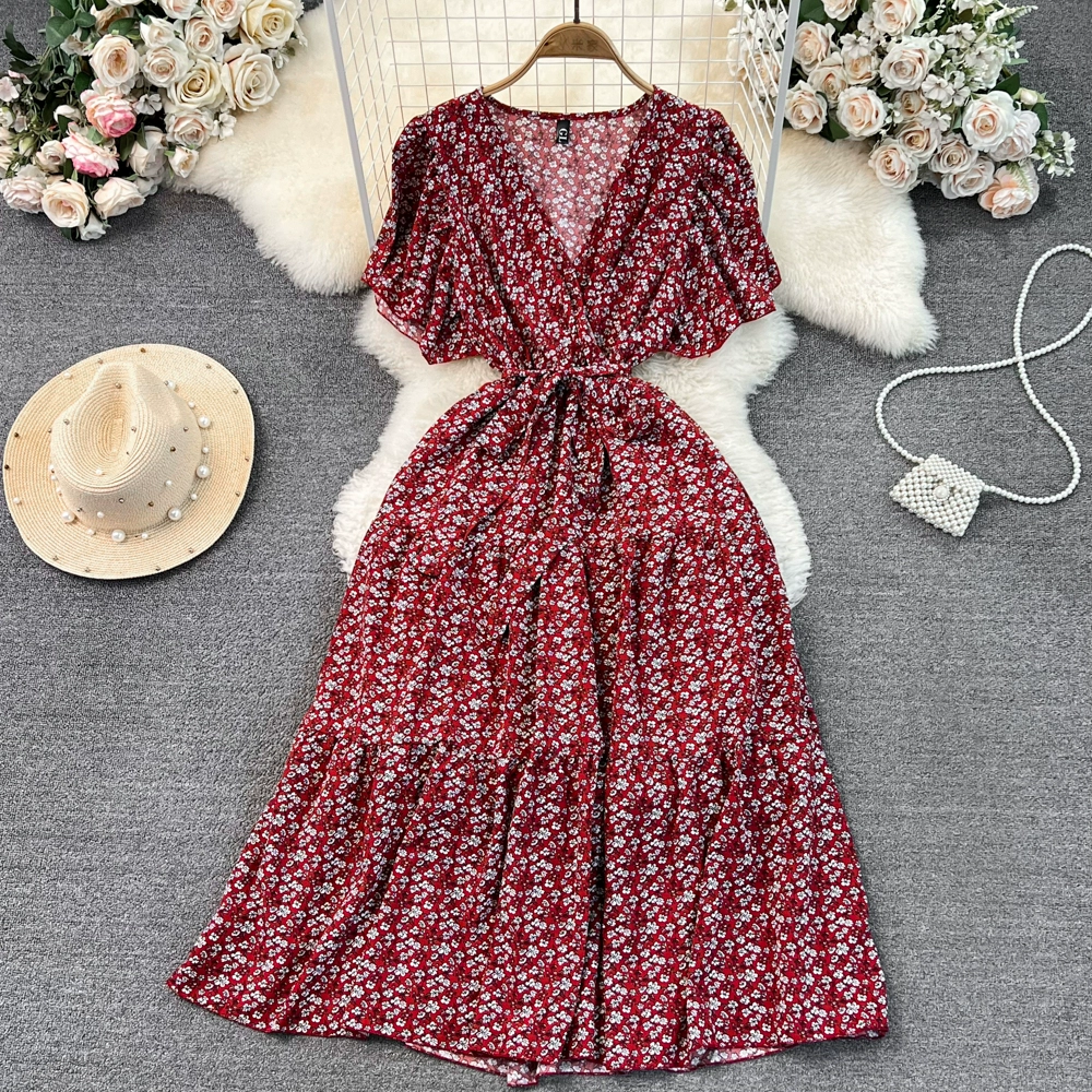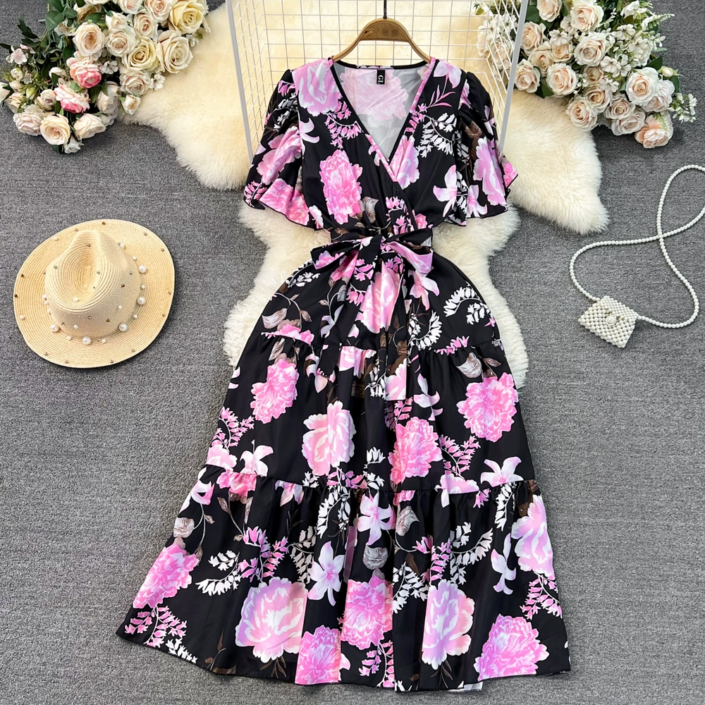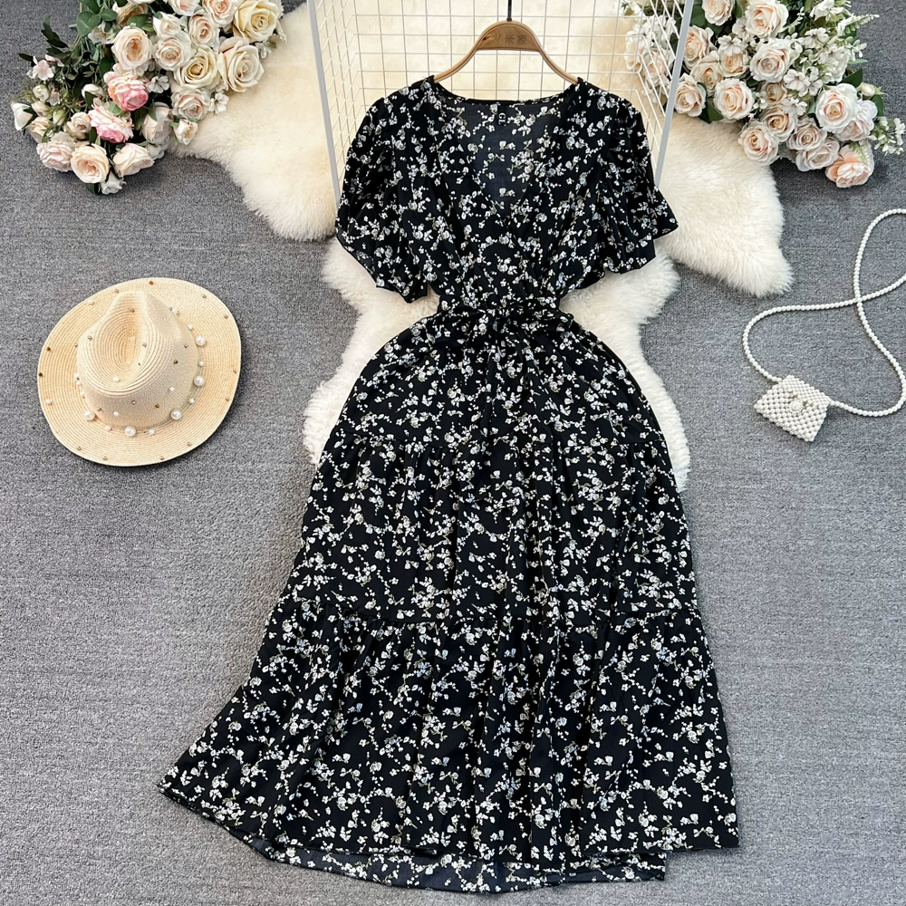 | nameOriginal | chic Korean bubble V-neck a-line dress short sleeves |