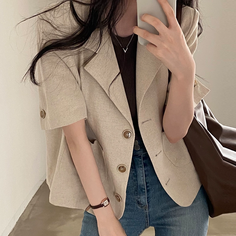 | nameOriginal | chic Korean lapel three-button linen casual short sleeves |