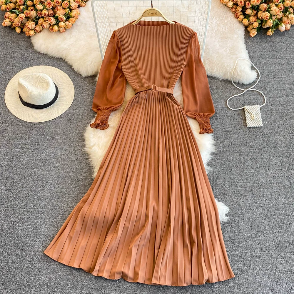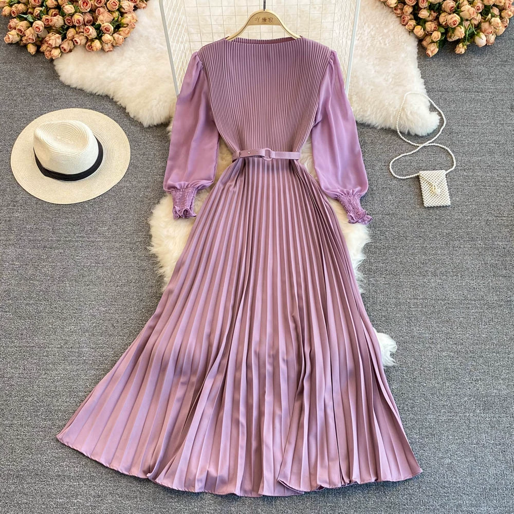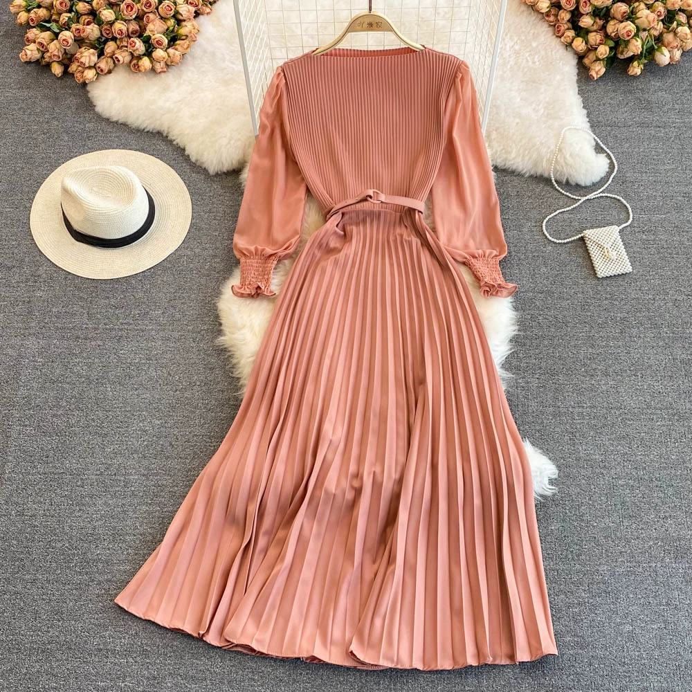 | nameOriginal | chic korean new style round neck pleated dress with wide hem |