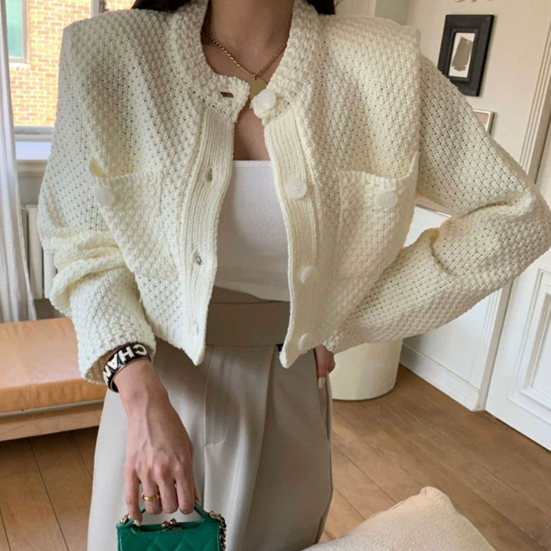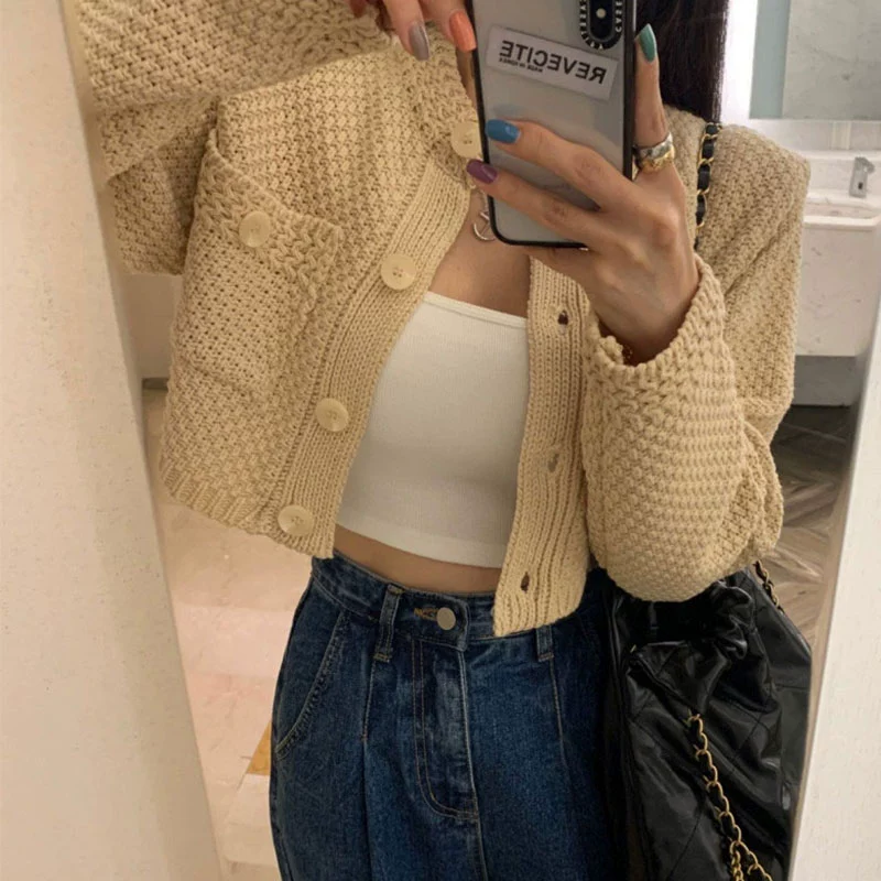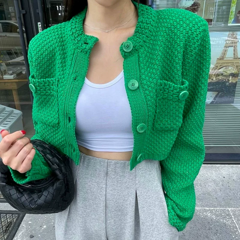 | nameOriginal | chic Korean round neck double pocket short knitted cardigan |