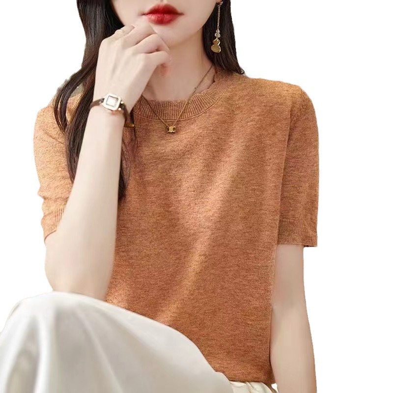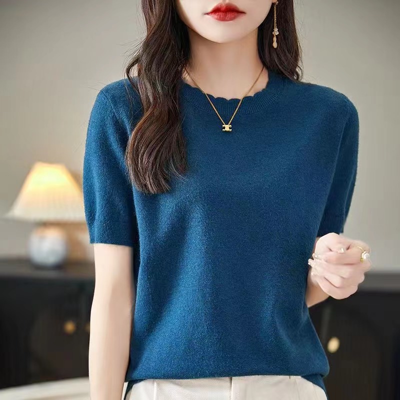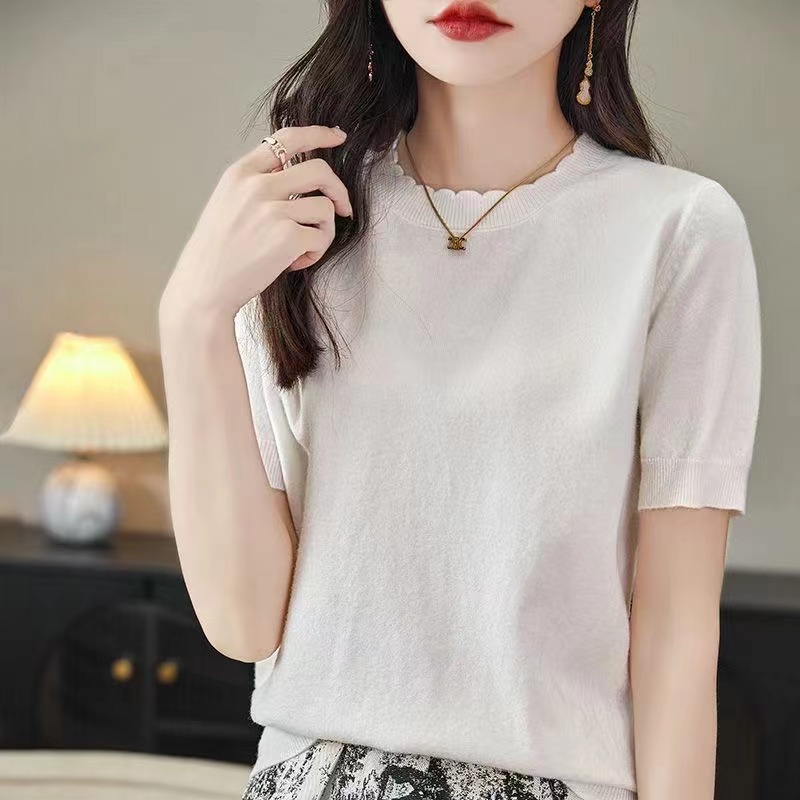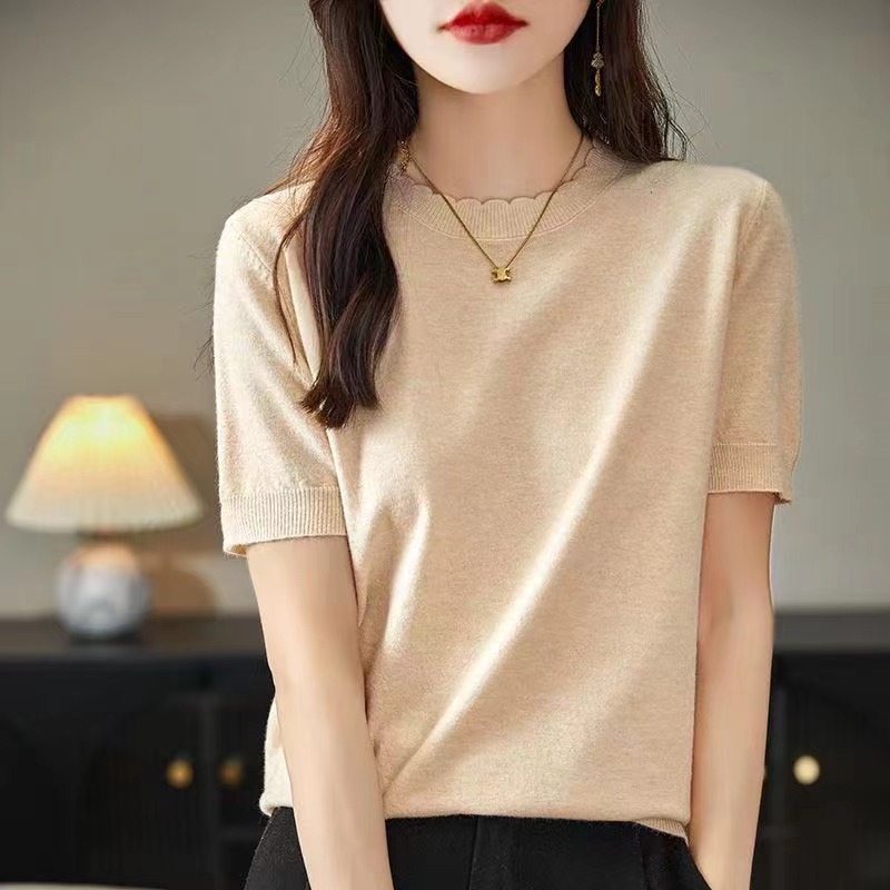 | nameOriginal | Chic Lace Crewneck Half-sleeve Base Shirt Women's 2024 New Summer Knitted Thin Inner All-match Short-sleeve T-shirt |