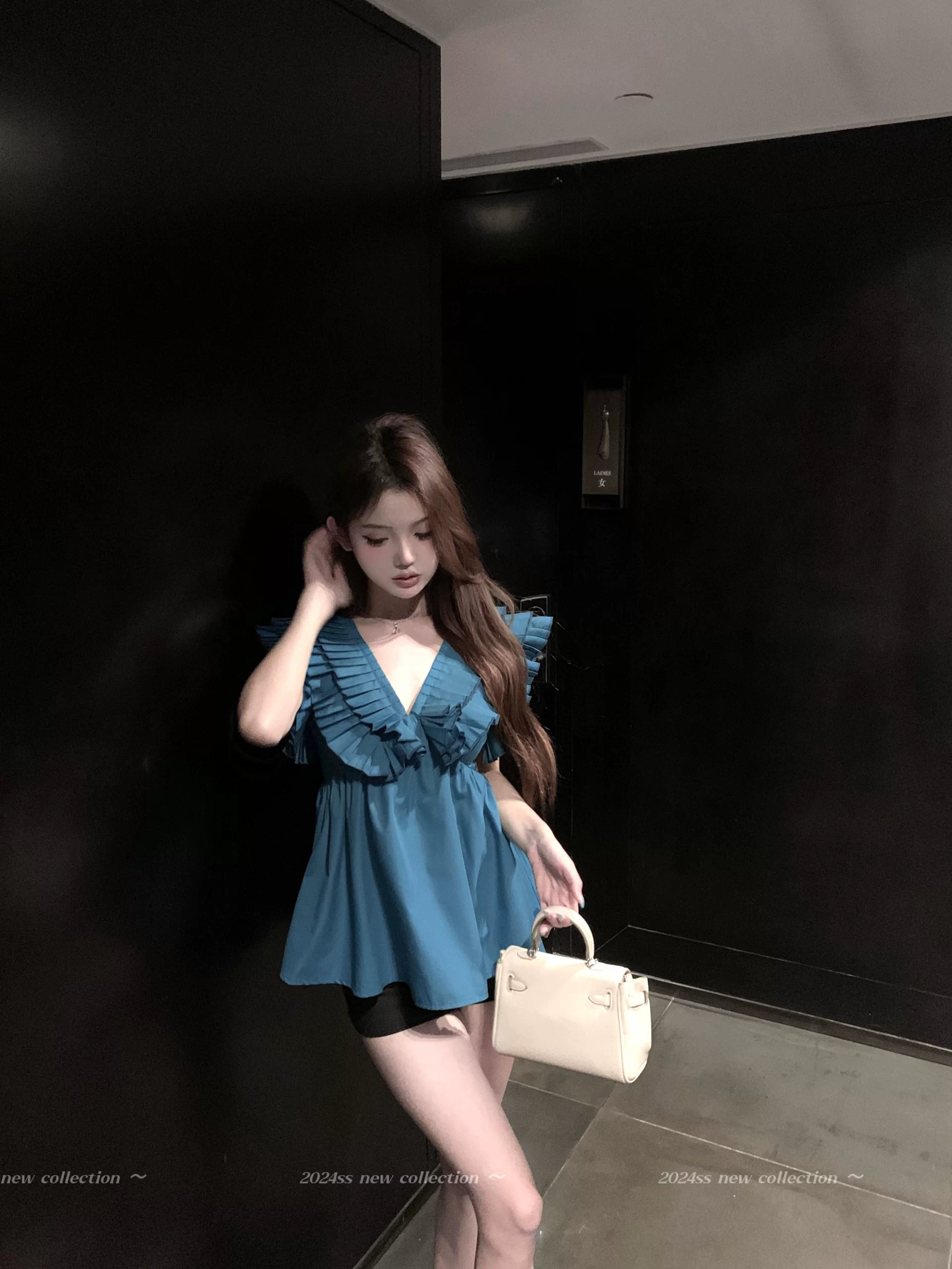 | nameOriginal | chic lake blue loose multi-layered ruffle shirt |
