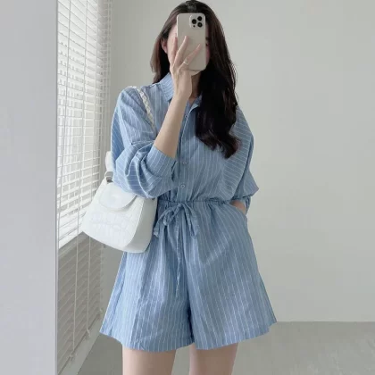 | nameOriginal | chic lapel single breasted lace up waist shorts with drawstring |