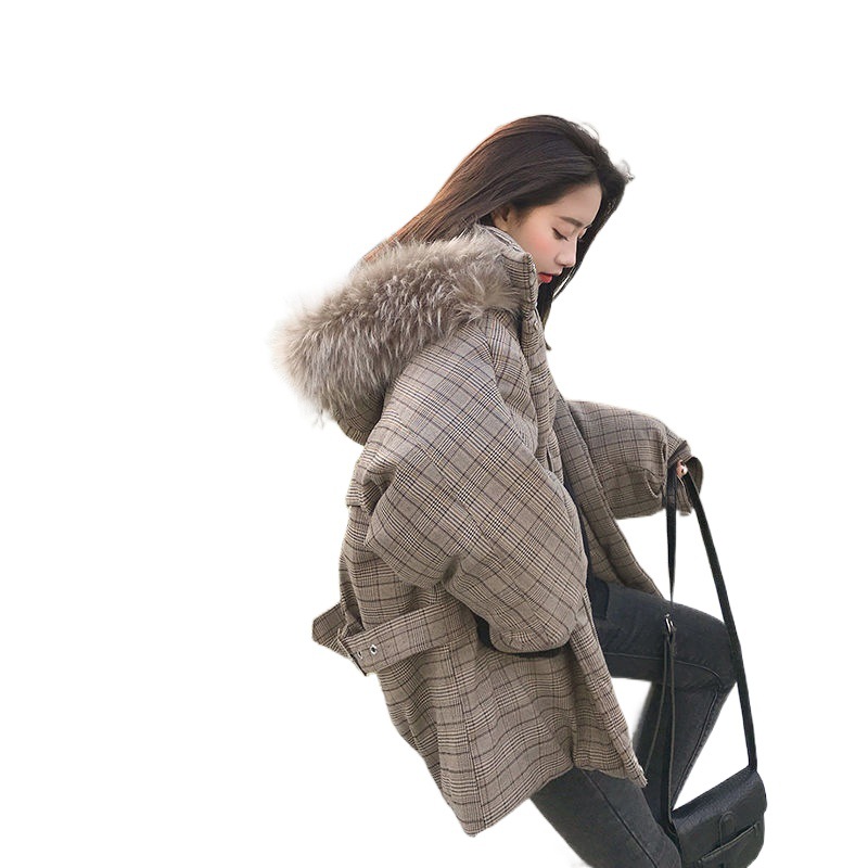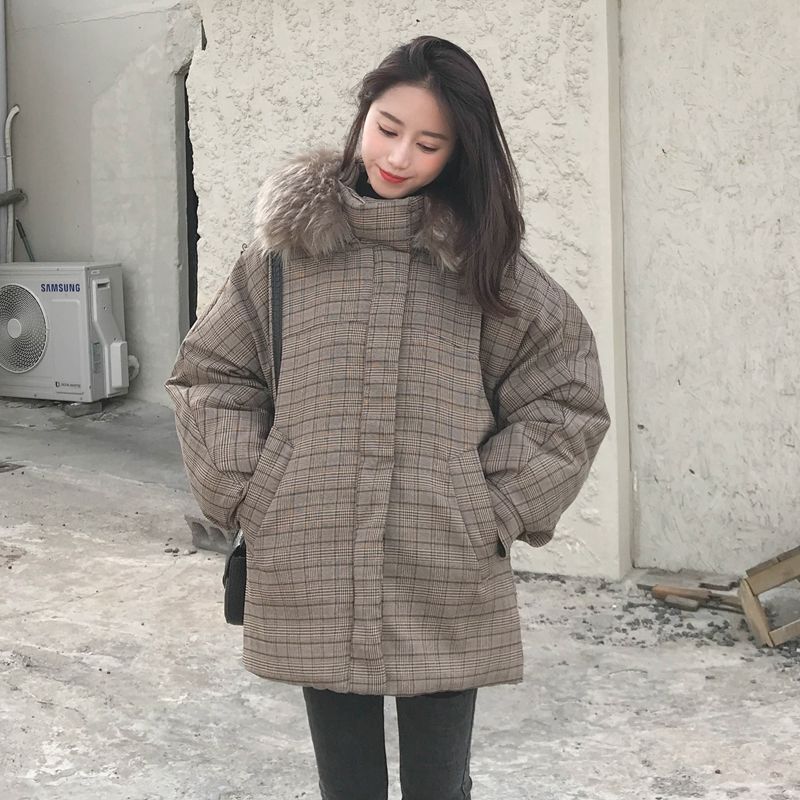 | nameOriginal | chic large fur collar plaid cotton-padded coat winter coat women's Korean-style loose student bread coat Harajuku style thickened cotton-padded jacket |