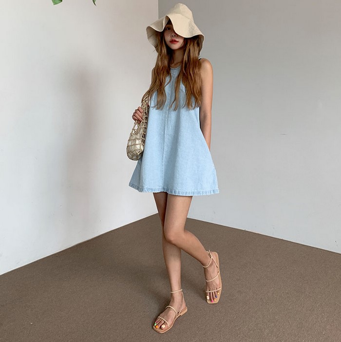 | nameOriginal | chic light color korean denim dress for beach photoshoot |