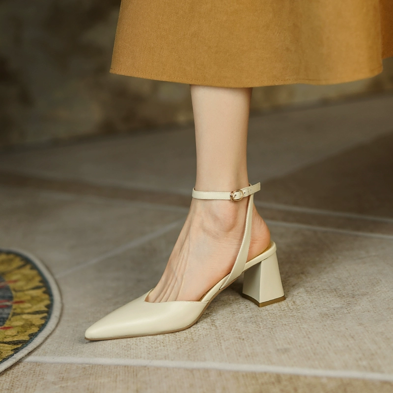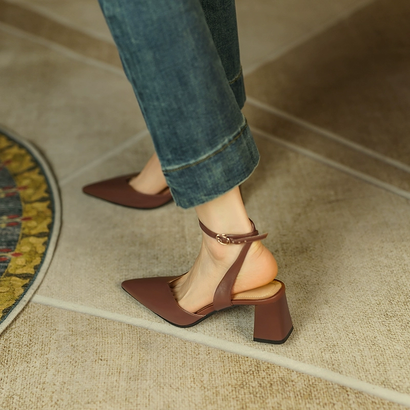 | nameOriginal | Chic niche design back empty thick heel one-word buckle strap |