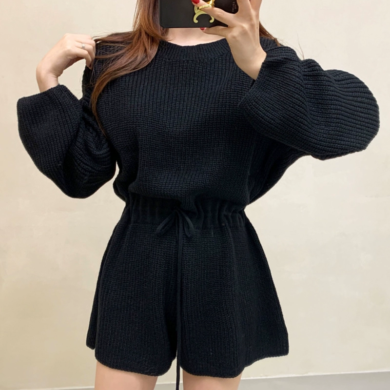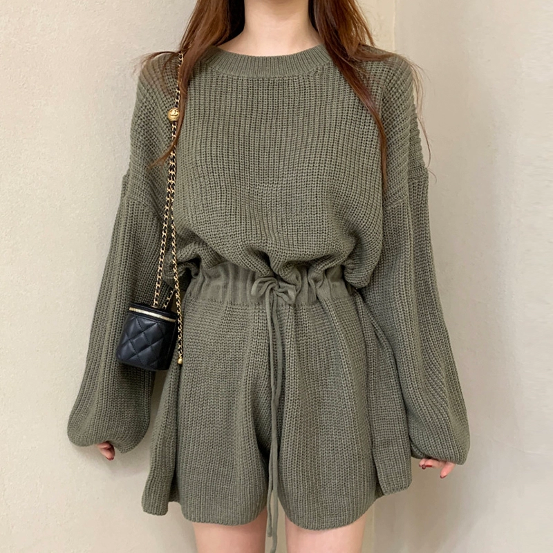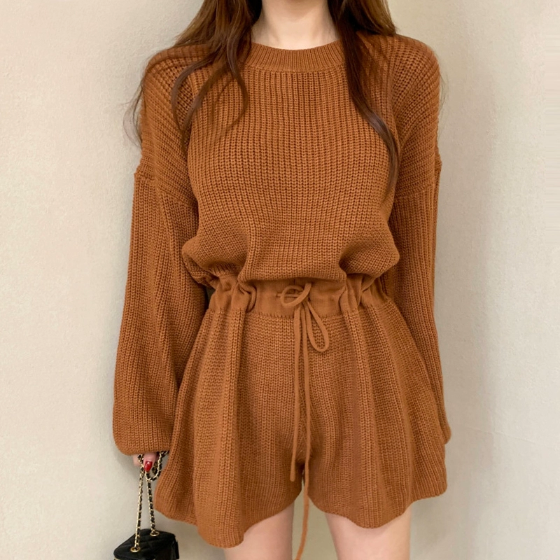 chic niche round neck lace-up knitted shorts drawstring