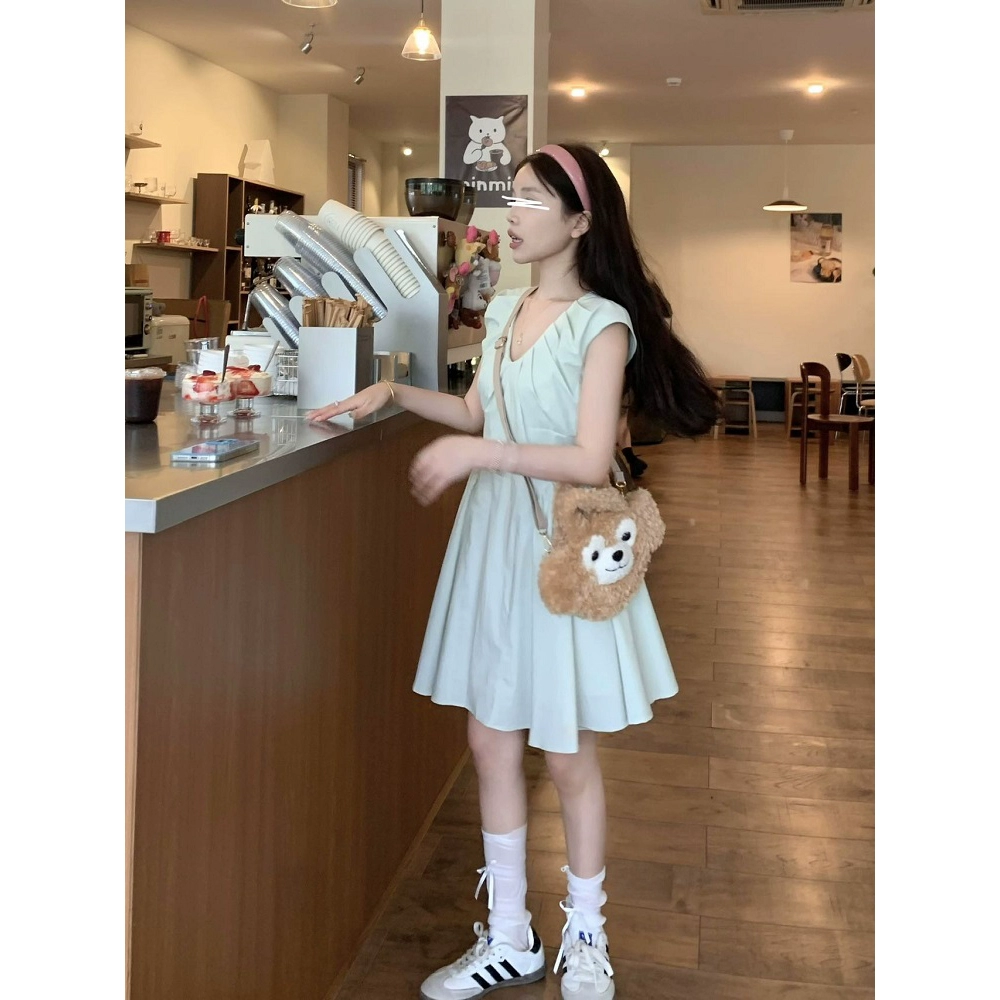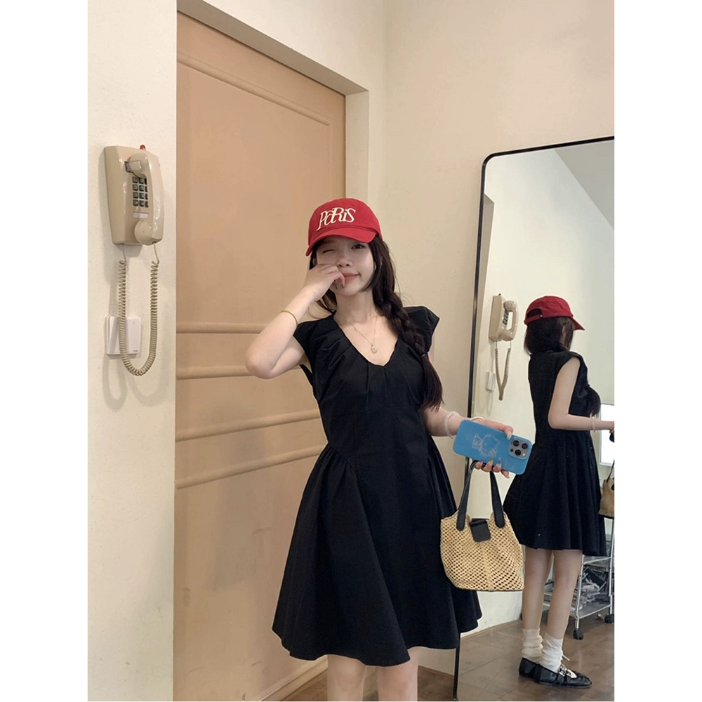 | nameOriginal | chic pleated summer temperament A-line skirt v-neck vest |