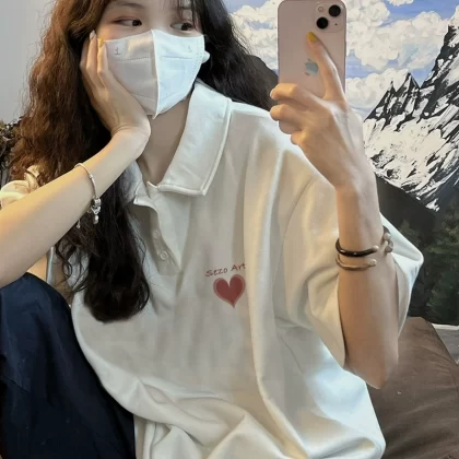 Chic Polo Shirt Retro Printing Short Short Sleeve