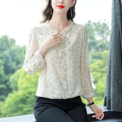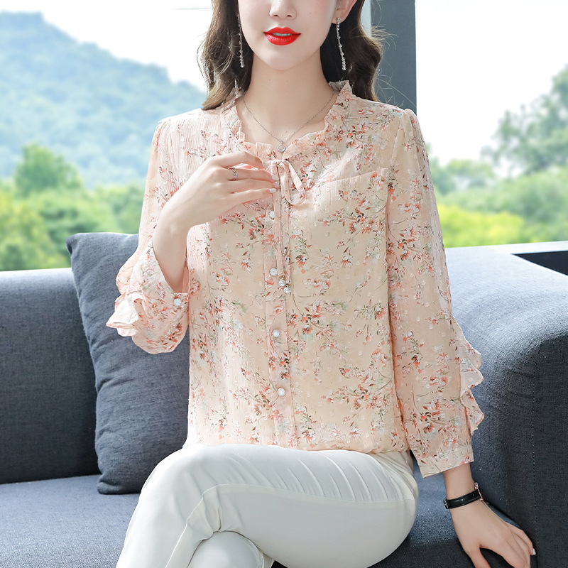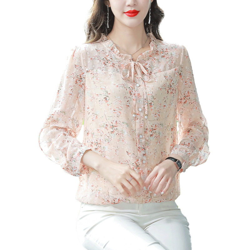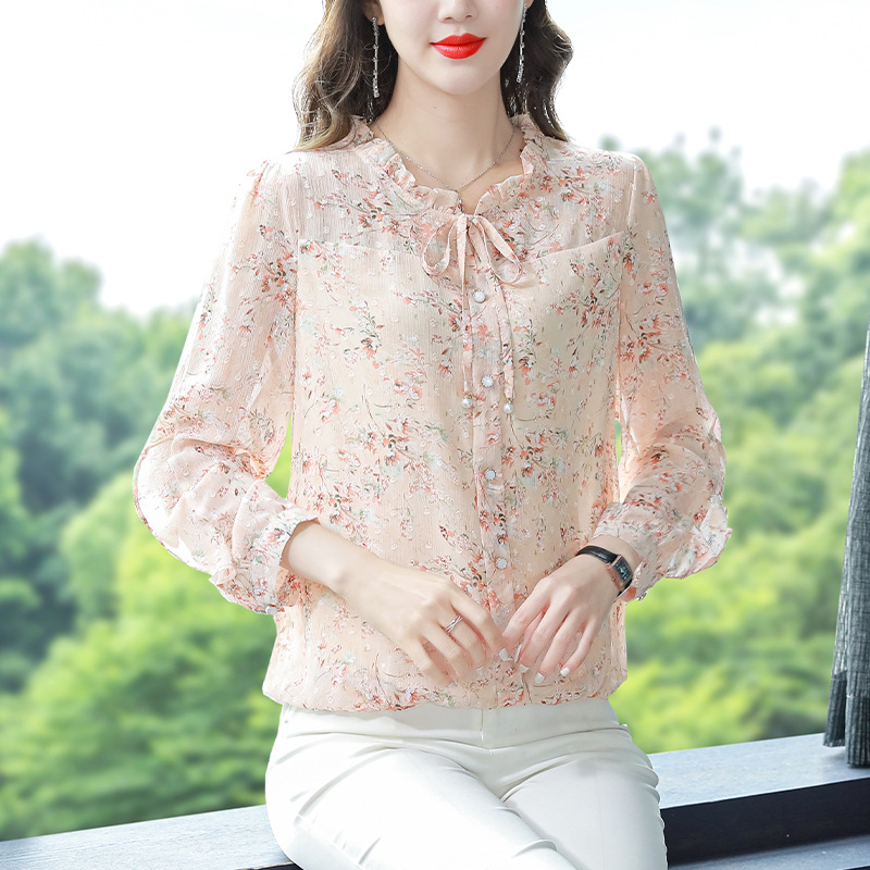 | nameOriginal | Chic Pretty Small Shirt Loose Belly Covering Mulberry Silk Shirt Women's Long Sleeve Spring and Autumn New Arrival Floral Chiffon Top |