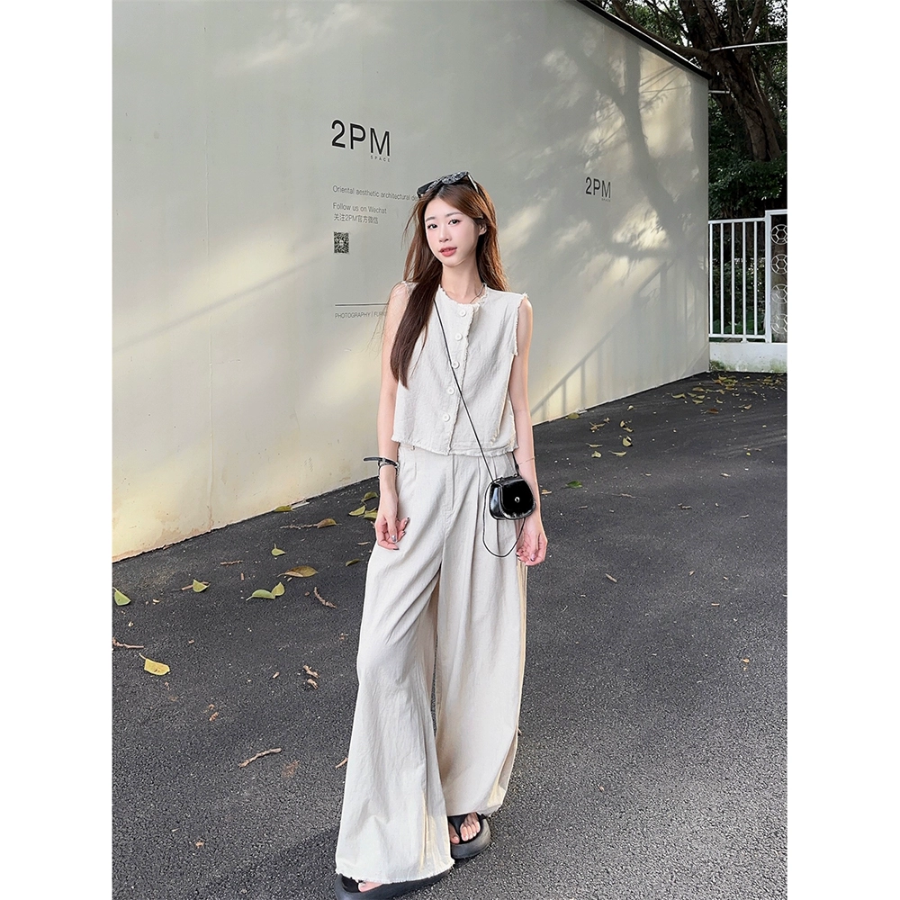 | nameOriginal | chic raw edge casual pants women's summer sleeveless vest |