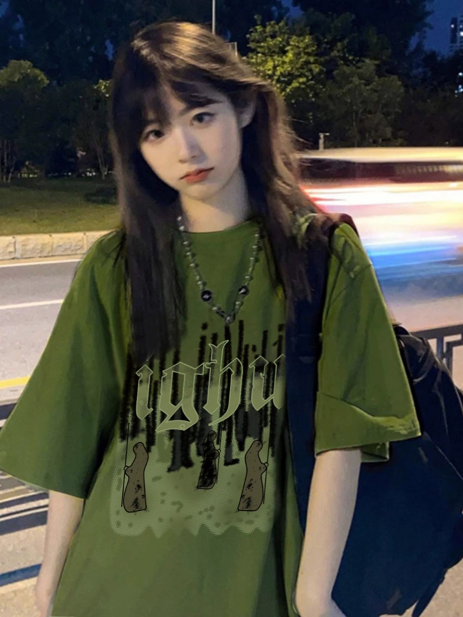 chic retro loose cotton summer short-sleeved T-shirt