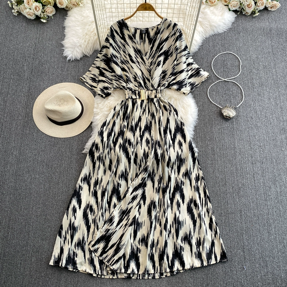 | nameOriginal | chic retro V-neck contrast pleated dress ink |