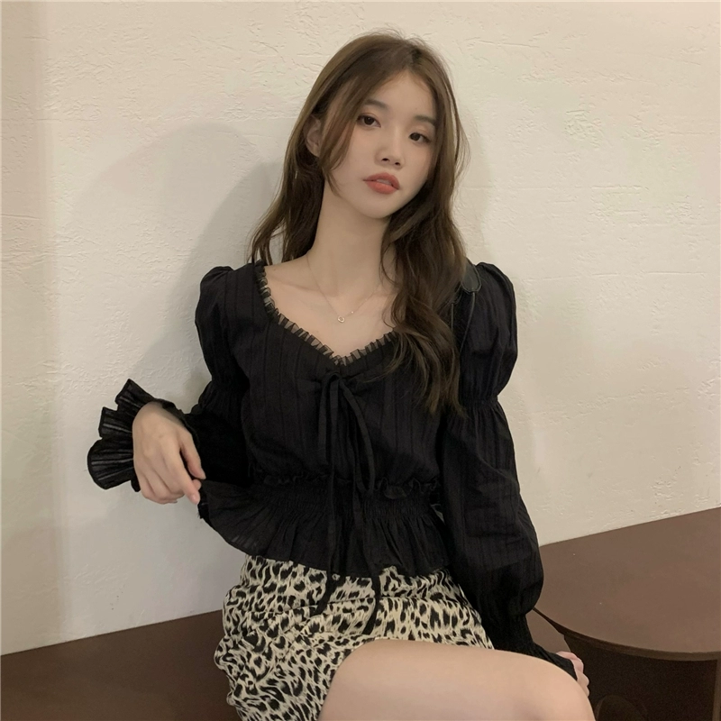 Chic shirt waist slimming long sleeves textured lace