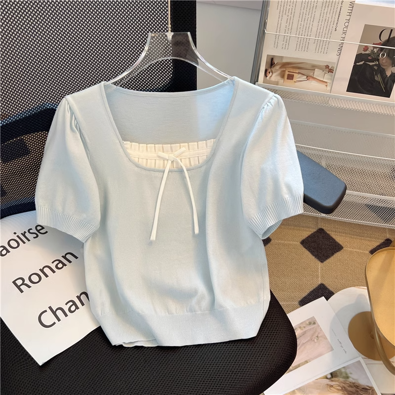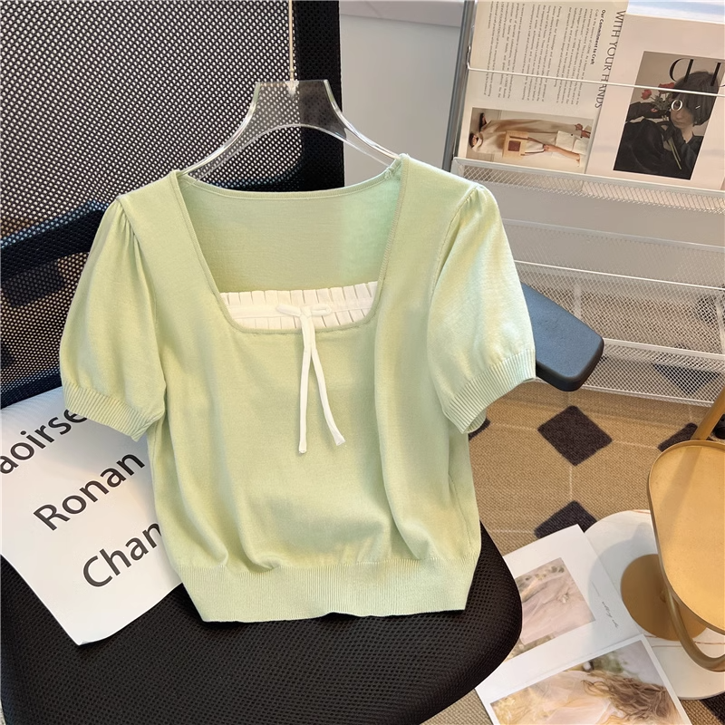 | nameOriginal | Chic short-sleeved T-shirt Hong Kong style square neck fat mm fake two pieces |