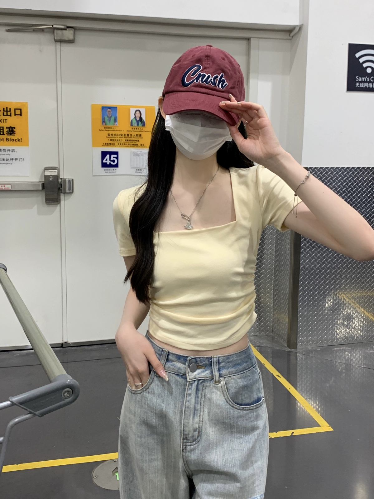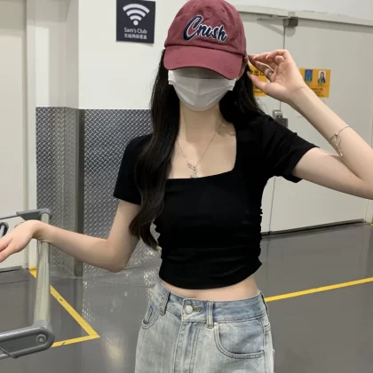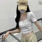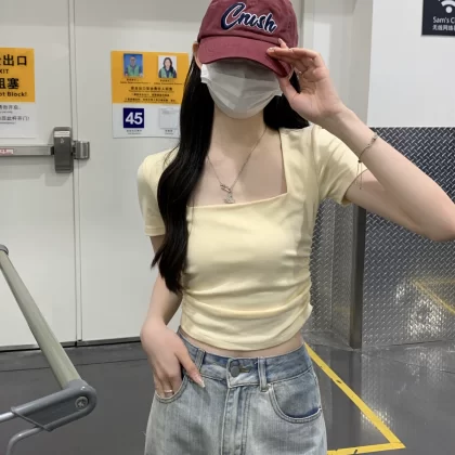 | nameOriginal | chic short-sleeved waisted smocked white t-shirt |