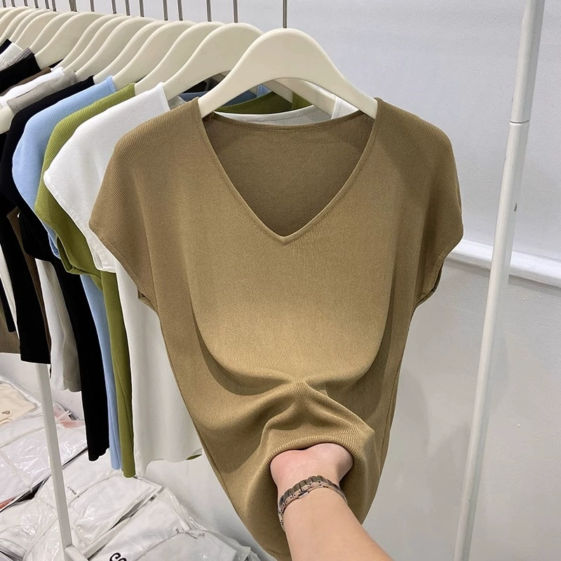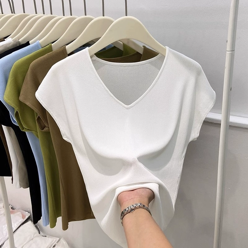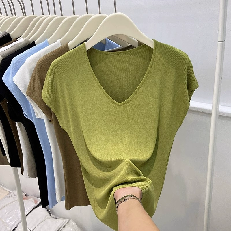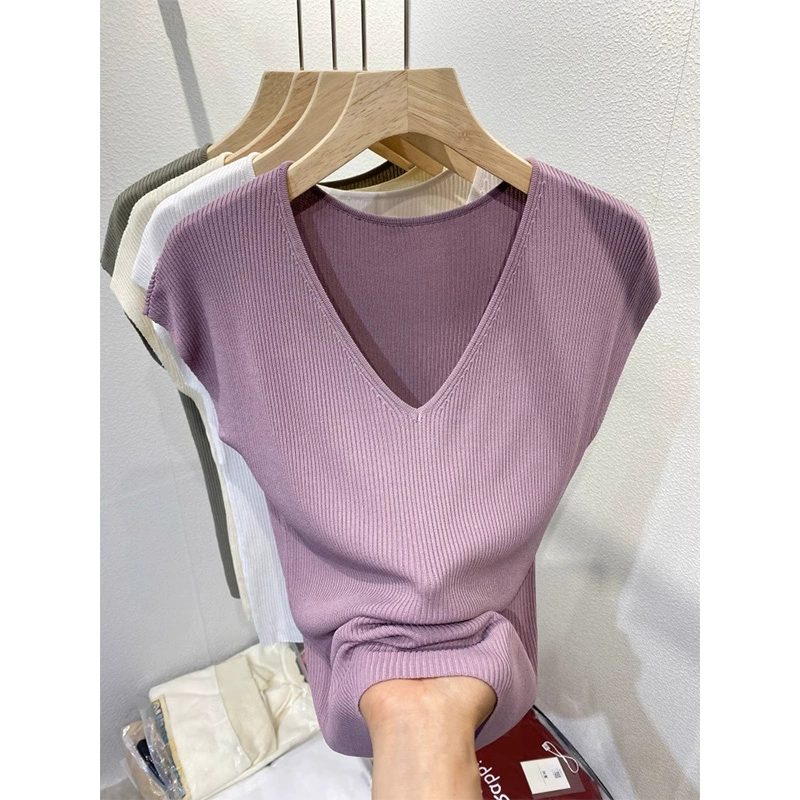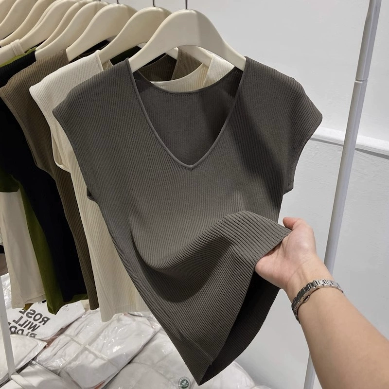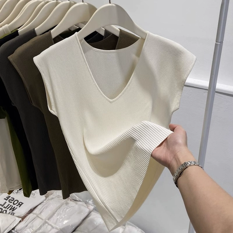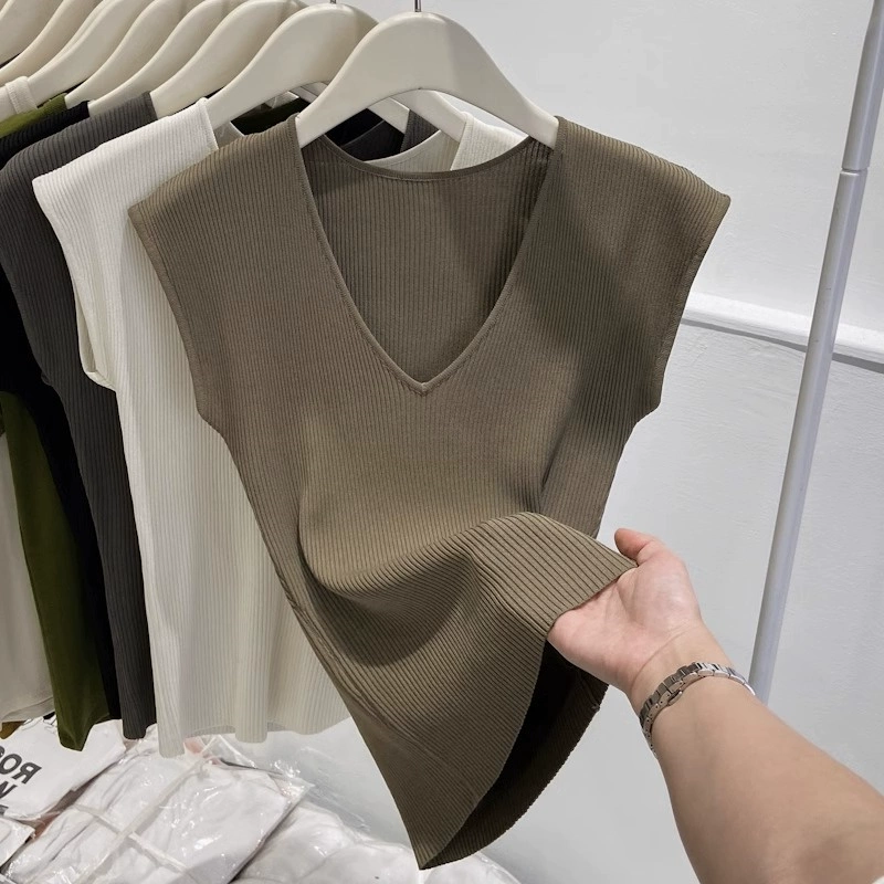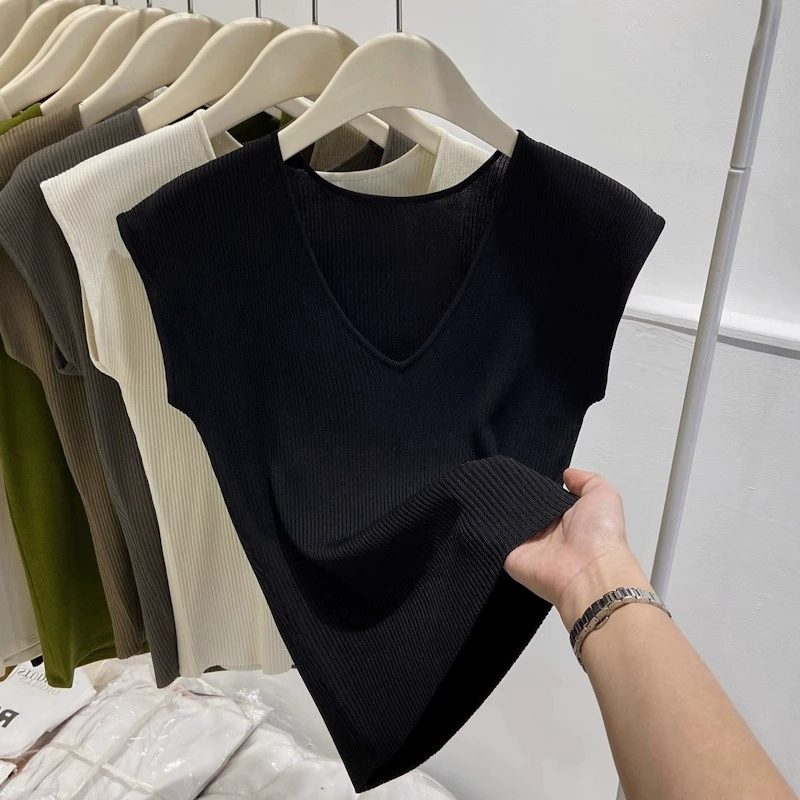 | nameOriginal | Chic shoulder sleeveless ice silk knitted slim fit V-neck T-shirt |