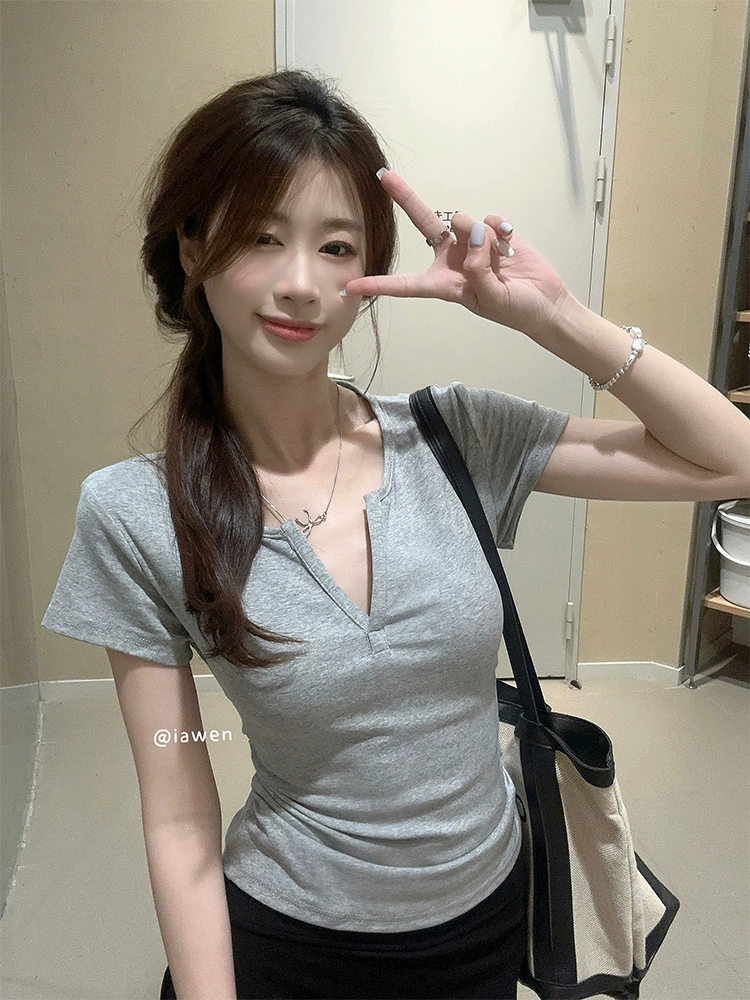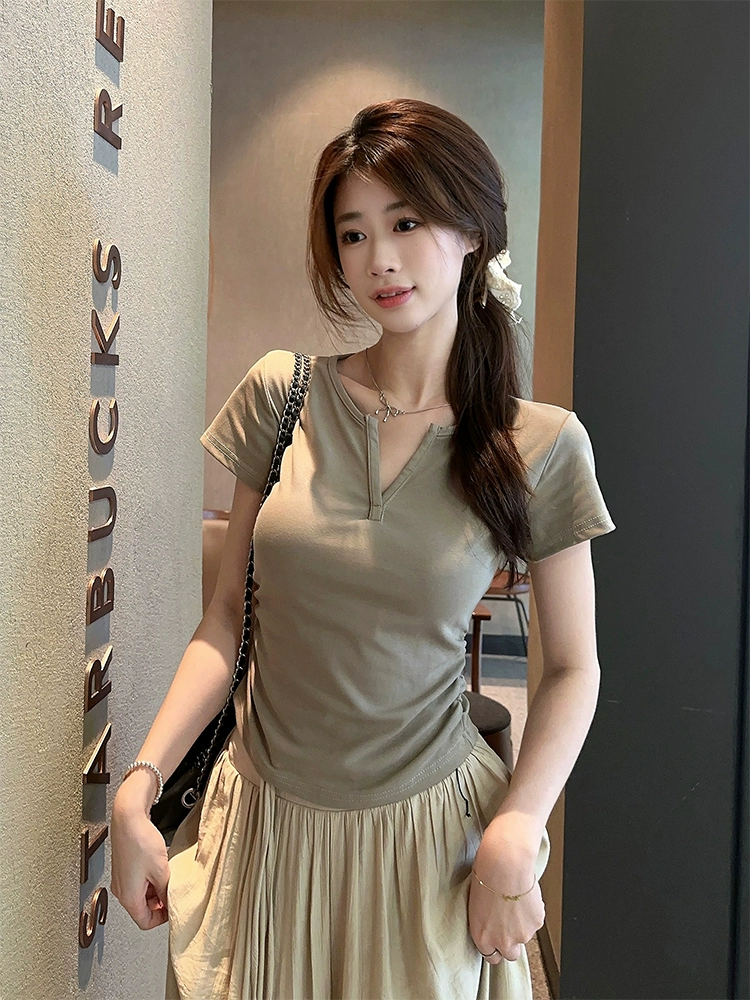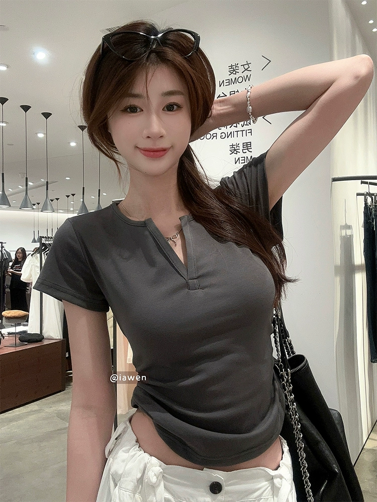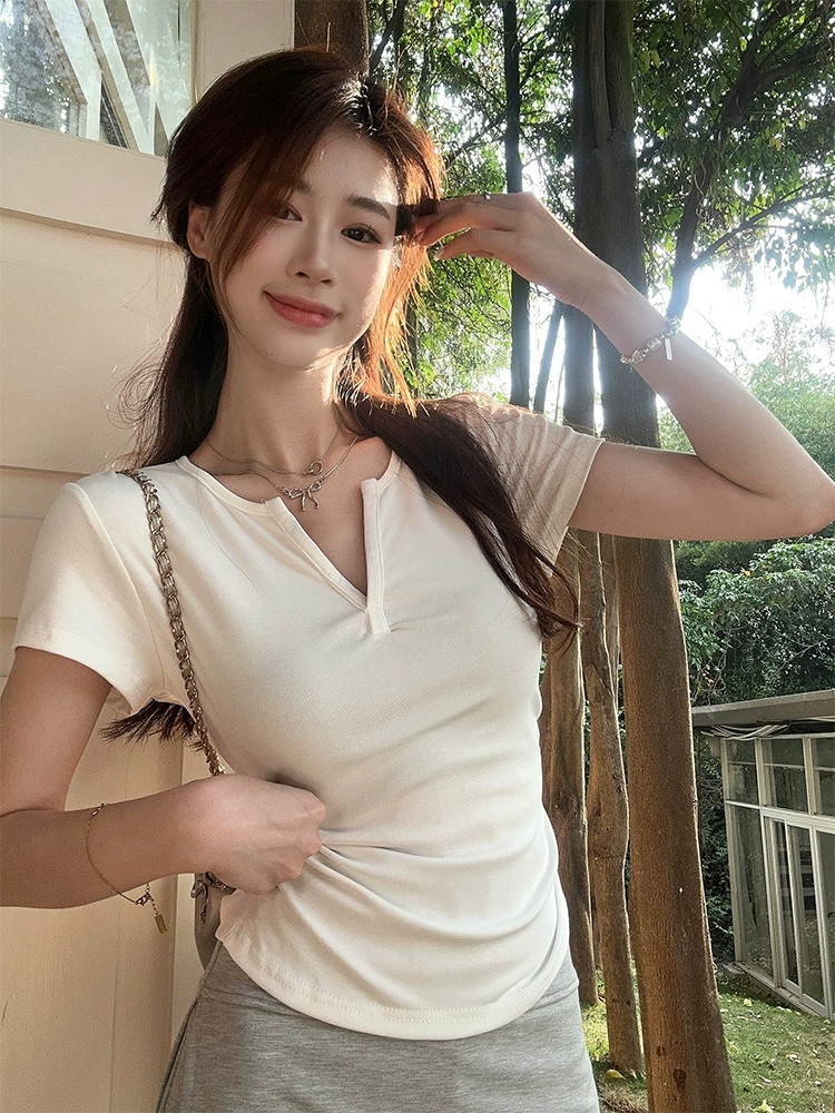 | nameOriginal | chic shoulder summer solid color slim short-sleeved T-shirt |
