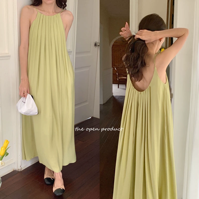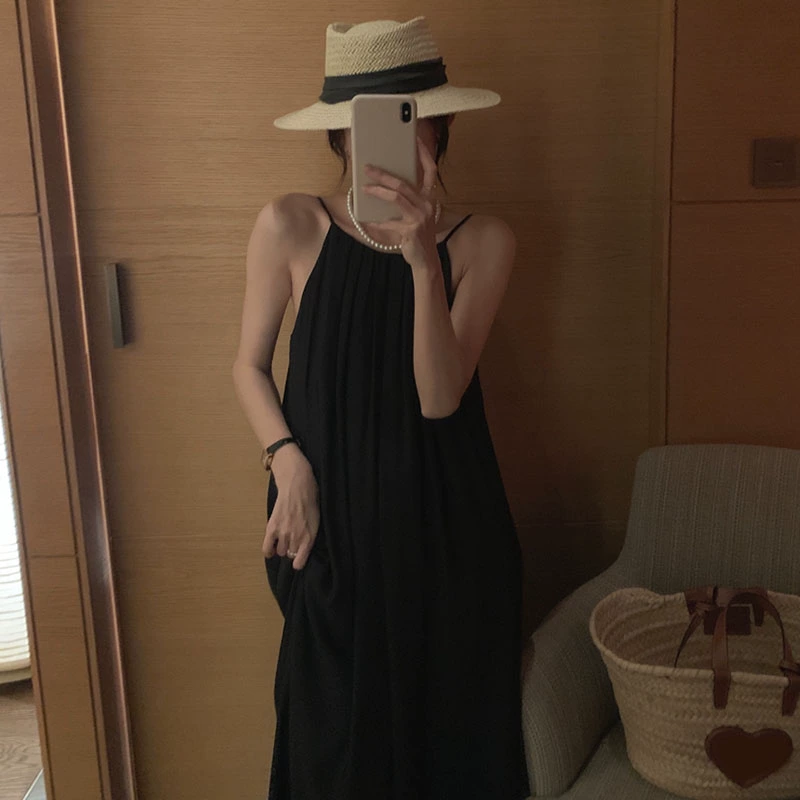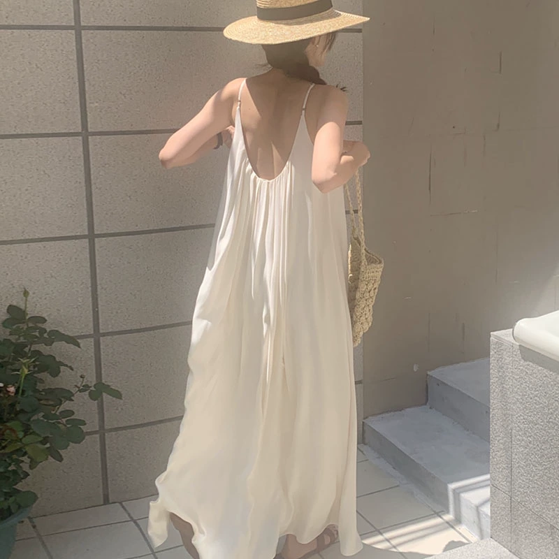 | nameOriginal | chic simple round neck large backless suspender dress |