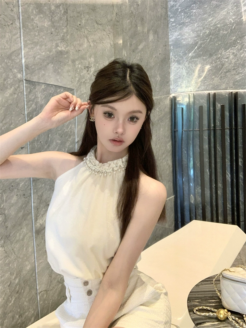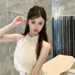 | nameOriginal | Chic sleeveless halter neck high waisted wide leg shorts with beading |