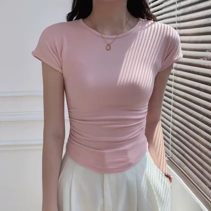 | nameOriginal | Chic slim fit knitted top round neck short sleeve t-shirt |