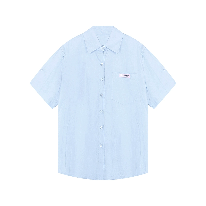 | nameOriginal | chic small logo letter loose blue short-sleeved shirt |