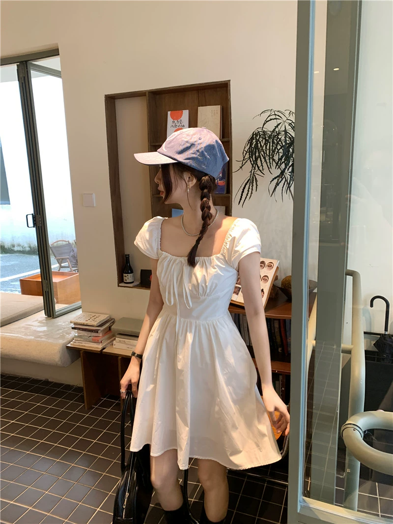 | nameOriginal | chic smocked lace-up summer short-sleeved dress |
