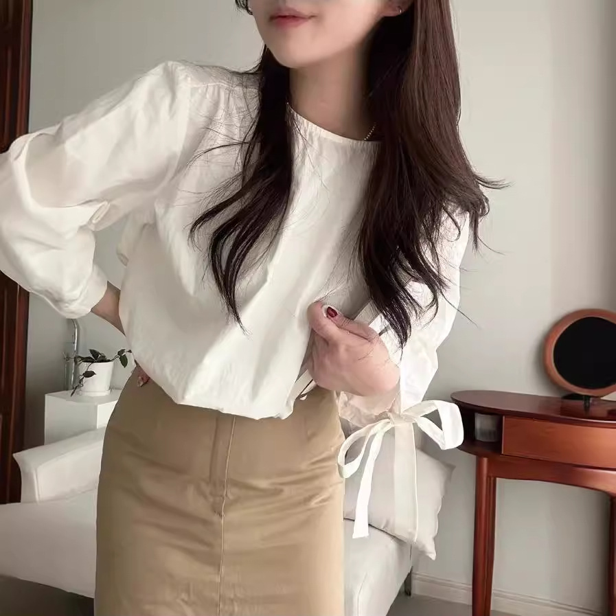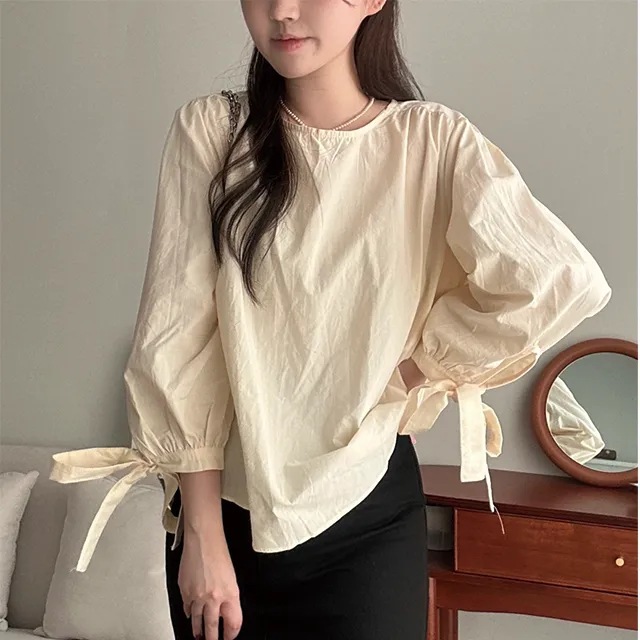 | nameOriginal | Chic Spring and Autumn Korean Style New Niche Design Bow Strap Lantern Sleeve Shirt Top Women |
