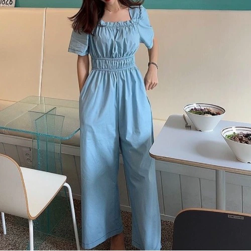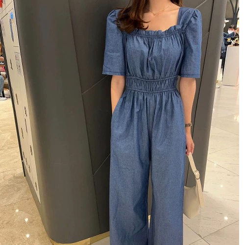 | nameOriginal | chic square neck ruffled denim jumpsuit |