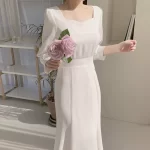 | nameOriginal | Chic square neckline revealing clavicle slimming dress fishtail |