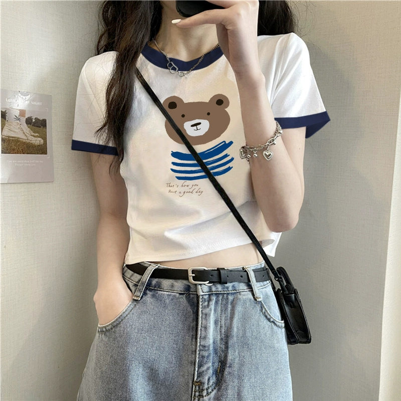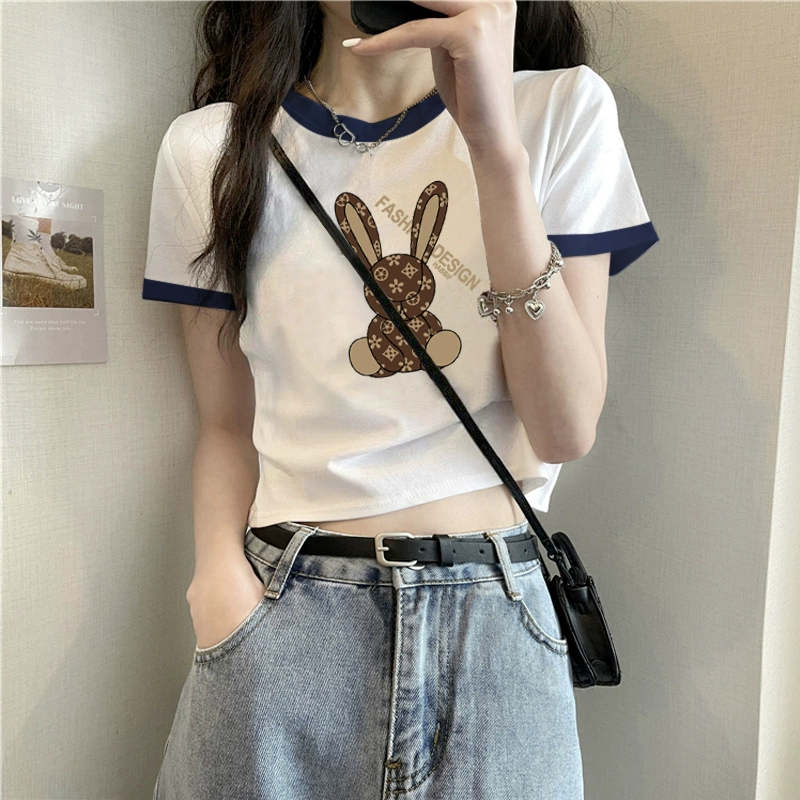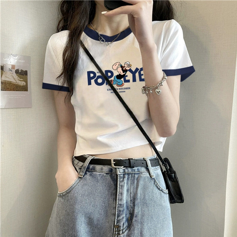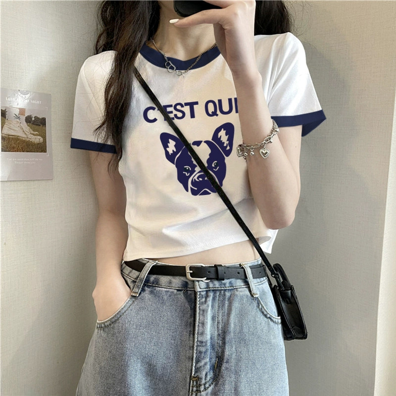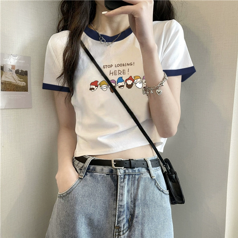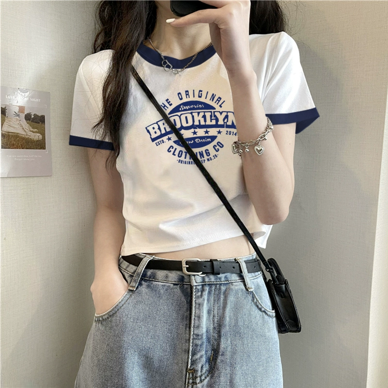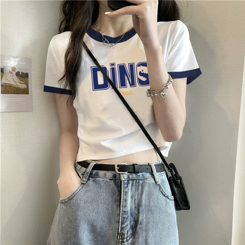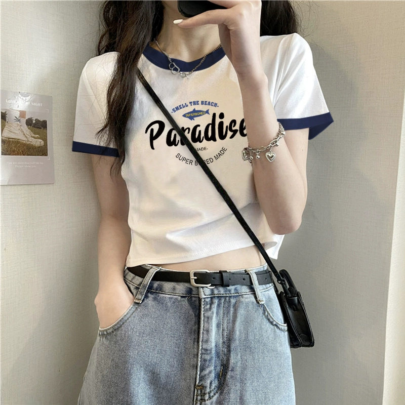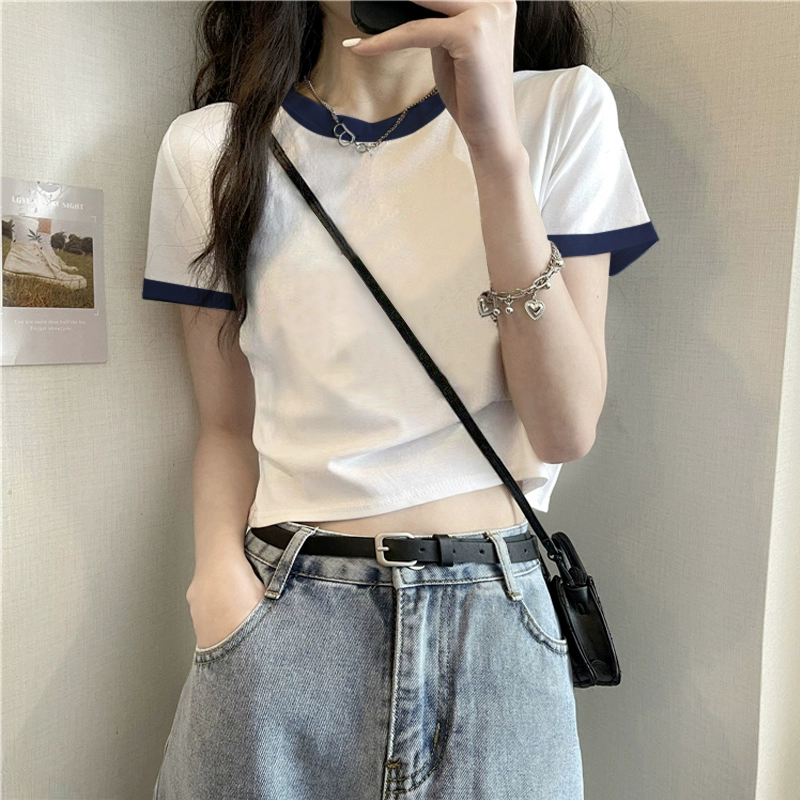 | nameOriginal | Chic stitching contrast color exposed navel fashionable high waist short sleeves |