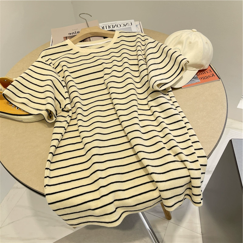 | nameOriginal | chic striped back letter patch round neck short sleeves |