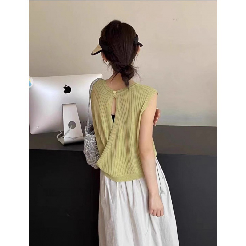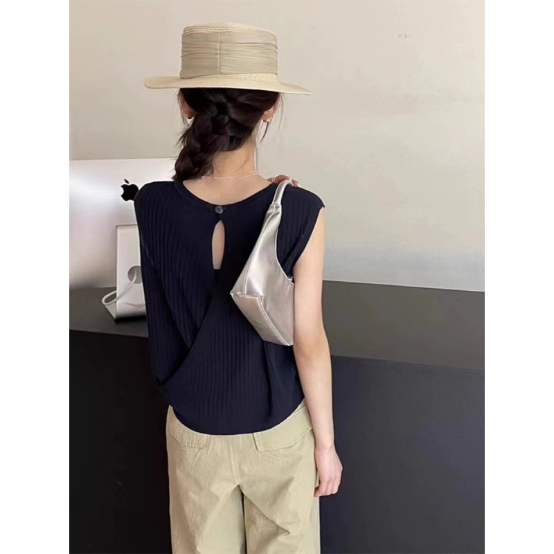 | nameOriginal | Chic Summer Beautiful Temperament Cross Design Sense Ice Silk Knitted Short Sleeveless French Backless Thin Top |