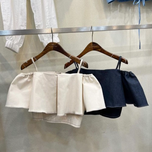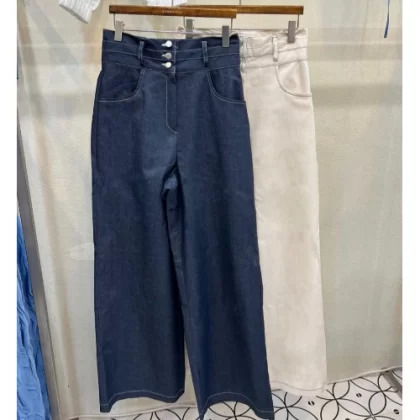 Chic summer splicing to make you look slim wide-leg trousers suspenders