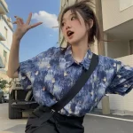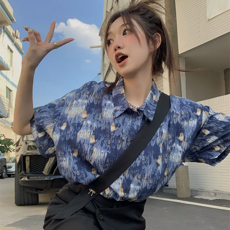 | nameOriginal | chic tie-dye printed loose chiffon short-sleeved shirt |